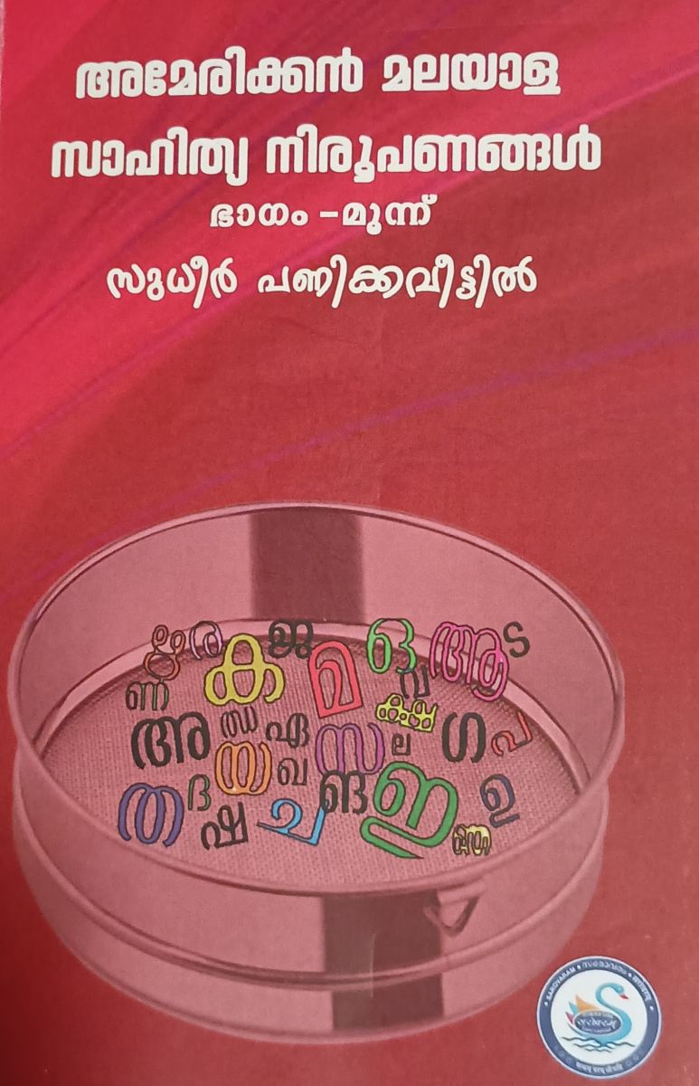 സുധീര് പണിക്കവീട്ടിലിന്റെ, അമേരിക്കന് മലയാള സാഹിത്യ നിരൂപണ ങ്ങള് മൂന്നാം ഭാഗം പുസ്തകത്തില്, നോര്ത്തമേരിക്കയിലും വിദേശങ്ങളി ലുമുള്ള, ഇരുപത്തിഎട്ട് എഴുത്തുകാരുടെ, നാല്പത്തിഅഞ്ച് പുസ്തകങ്ങ ളെ സംബന്ധിച്ച നിരൂപണങ്ങളുണ്ട്. അനുഭവ സ്മരണകള്, അവതാരിക, കഥാസമാഹാരങ്ങള്, കവിതാ സമാഹാരങ്ങള്, കുറിമാനം, ഖണ്ഡകാവ്യം, നോവല്, ബൈലൈന്, ലഘുപഠനവും സംഗ്രഹവും, ലേഖനസമാഹാരങ്ങള്, സഞ്ചാരവിവരണം, എന്നീ വിഷയങ്ങളെപ്പറ്റി എഴുതിയ ഈ പുസ്തകം പഠനാര്ഹമാണ്. ഒന്നിലധികം ഭാഷകളില് പരിചയവും, വിവിധ വിഷയ ങ്ങളെക്കുറിച്ച് ആഴമേറിയ പരിജ്ഞാനവുമുള്ള ബഹുമുഖപ്രതിഭയാണ് നിരൂപകന് എന്നുകൂടീ ഈ ഗ്രന്ഥം തെളിയിച്ചിട്ടുണ്ട്! രചനകള്ക്കു നല്കു ന്ന, അനുയോജ്യവും ആസ്വദിക്കത്തതുമായ ശൈലിയും, ലളിതവും മധുര വുമായ അവതരണവുമാണ് വിജയരഹസ്യം.
