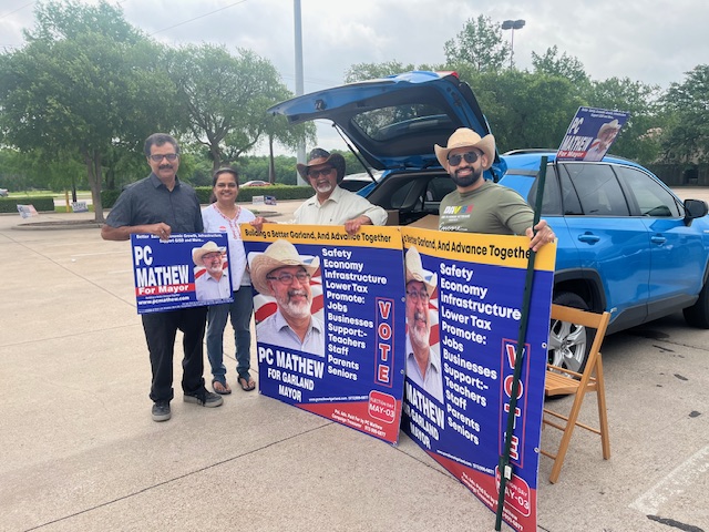ഡാളസ്: ഡാളസ് കൗണ്ടിയിൽ ഗാർലാൻഡ് സിറ്റി മുനിസിപ്പൽ തെരഞ്ഞടുപ്പിൽ മേയർ സ്ഥാനത്തേക്ക് മത്സരിക്കുന്ന ശ്രീ പി. സി. മാത്യുവിന്റെ പിന്തുണ വർധിച്ചതായി ക്യാമ്പയിൻ മാനേജർ മാർട്ടിൻ പാടേറ്റി, സെക്രട്ടറി കാർത്തികാ പോൾ, ട്രെഷറർ ബിൽ ഇൻഗ്രാം, ജോൺ സാമുവേൽ. തോമസ് ചെള്ളാത്തു, ഹെലൻ മെയ്സ്, റയാൻ കീനാൻ എന്നിവർ ഒരു സംയുക്ത പ്രസ്താവനയിലൂടെ അറിയിച്ചു.