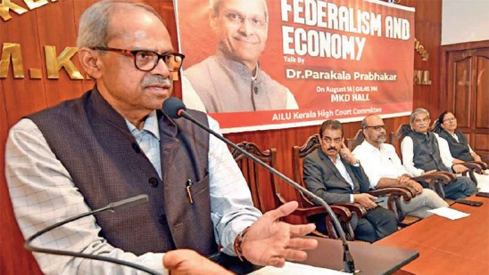 ബിജെപി ഇതര ഭരണമുള്ള സംസ്ഥാനങ്ങളിൽ ഗവർണറുടെ ഭരണമാണ്. പ്രസിഡന്റ് ഉൾപ്പെടെ രാഷ്ട്രീയ ഇടപെടൽ നടത്തുന്നത് ഫെഡറലിസത്തെ ഇല്ലാതാക്കും. ഫിനാൻഷ്യൽ ഫെഡറലിസം വൻ തകർച്ചയിലാണെന്നും പരകാല പ്രഭാകർ പറഞ്ഞു.നിലവിലെ കേന്ദ്ര ധന മന്ത്രി നിർമല സീതരാമന്റെ ഭർത്താവാണ് ലോക പ്രശസ്തനായ ഈ സാമ്പത്തിക വിദക്തൻ ..
