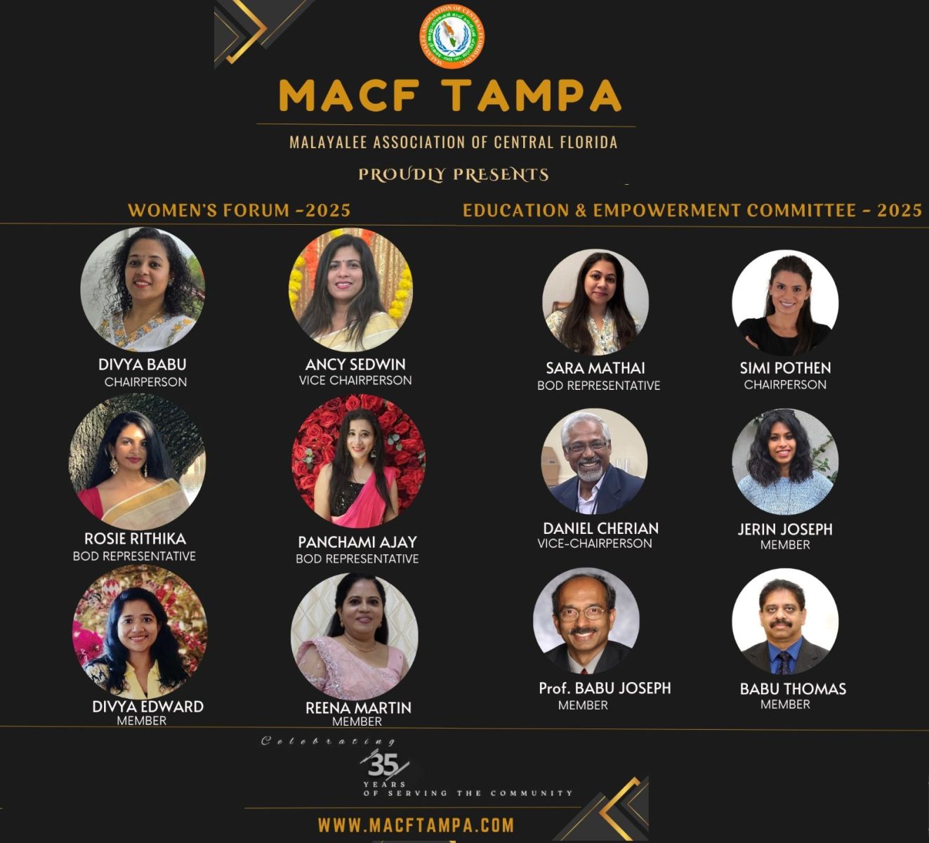 അമേരിക്കയിലെ കേരളമായ ഫ്ലോറിഡയിലെ കേരളത്തനിമ നിലനിർത്തുന്ന കലാ സാംസ്കാരിക കേന്ദ്രമായ MACF’ ഇന്റെ ഭാഗമാകുവാനും പരിപാടികളുടെ അപ്ഡേറ്റ്സ് കിട്ടുവാനും MACF ഫേസ്ബുക് പേജ് (https://www.facebook.com/MacfTampa) ഫോള്ലോ ചെയ്യുക.