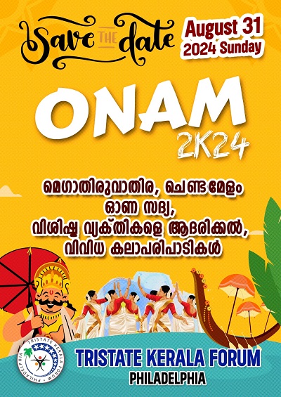 ഫിലാഡൽഫിയ: ട്രൈസ്റ്റേറ്റ് കേരളാ ഫോറം 2024 ലെ ഓണാഘോഷ പരിപാടികൾക്ക് തുടക്കം കുറിച്ച് കൊണ്ട് ഓണാഘോഷ കമ്മിറ്റി പ്രവർത്തനോൽഘാടനവും ടിക്കറ്റ് കിക്ക് ഓഫും ഫിലാഡൽഫിയ സിറോ മലബാർ ഓഡിറ്റോറിയത്തിൽ വച്ച് നടത്തപ്പെട്ടു. പെൺസിൽവാനിയ, ഡെലവർ ന്യൂ ജേഴ്സി ട്രൈസ്റ്റേറ്റ് ഏരിയയിലെ പതിനഞ്ചിൽ പരം മലയാളി സംഘടനകളുടെ ഒരുമയുടെ ആരവമായ ട്രൈസ്റ്റേറ്റ് കേരളാ ഫോറത്തിൻറ്റെ നേതൃത്യത്തിൽ 2024 ഓഗസ്റ് 31 നു ഫിലാഡൽഫിയ സിറോ മലബാർ ഓഡിറ്റോറിയത്തിൽ വച്ച് നടത്തപ്പെടുന്ന ഓണാഘോഷ പരിപാടികൾക്ക് "ആരവം 2024" എന്നാണ് നാമകരണം ചെയ്യപ്പെട്ടിരിക്കുന്നത്.
