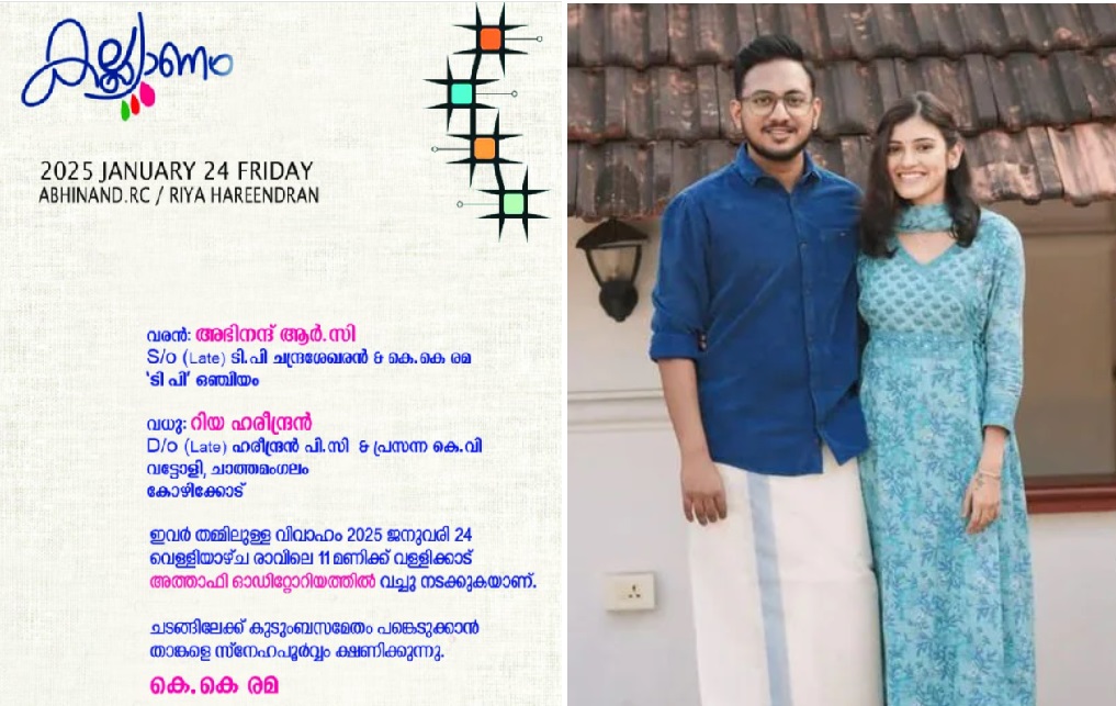 രാഷ്ട്രീയ കേരളത്തിൻ്റെ തീരാനോവായ ടിപി ചന്ദ്രശേഖരൻ്റെ മകൻ അഭിനന്ദിൻ്റെ വിവാഹം ഇന്ന്. കോഴിക്കോട് വടകരയിൽ രാവിലെ 11നാണ് ചടങ്ങുകൾ. അമ്മ കെകെ രമയുടെ പേരിലുള്ള ക്ഷണപത്രം മുഖ്യമന്ത്രിയും സിപിഎം സംസ്ഥാന സെക്രട്ടറിയും അടക്കം നേതാക്കൾക്ക് എത്തിച്ചിട്ടുണ്ട്.