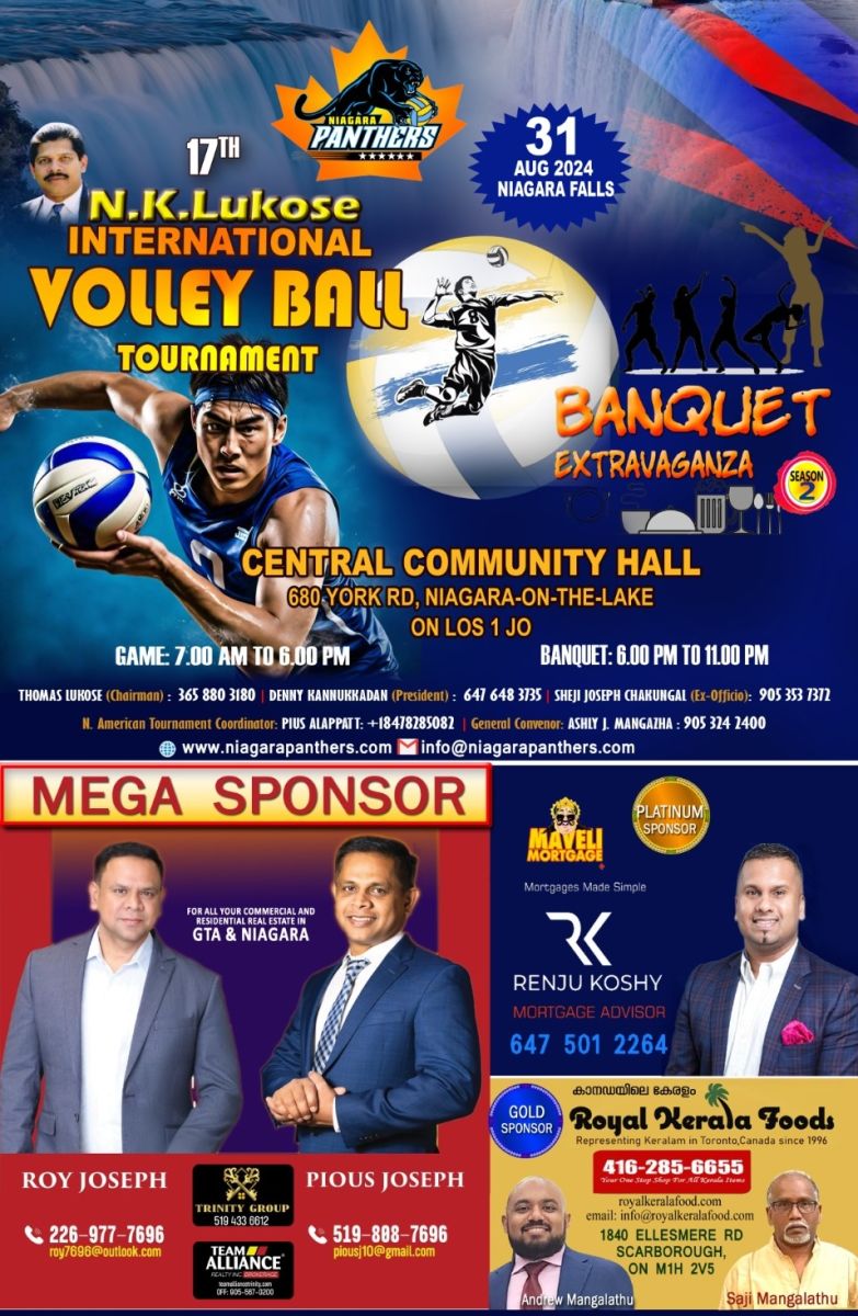 കൈക്കരുത്തിന്റെയും ഉയരത്തിന്റെയും വേഗത്തിന്റെയും സമന്വയമാണ് വോളീബോൾ. വലയ്ക്ക് മുകളിലൂടെ ചാടി ഉയർന്നു പായിക്കുന്ന നിലം തുളയ്ക്കുന്ന സ്മാഷുകൾ, ആ സ്മാഷുകളെ തടുക്കാൻ കെൽപ്പുള്ള കരുത്തന്മാർ എതിർ കോർട്ടിൽ. തടുക്കുക, എതിരാളികളുടെ ബ്ലോക്കിന് മുകളിലൂടെ അടിച്ചിരിത്തുക. കായിക പ്രേമികൾക്ക് എക്കാലത്തും ആവേശമായ പതിനേഴാമത് എൻ കെ ലൂക്കോസ് വോളിബാൾ മത്സരം, നോർത്ത് അമേരിക്കയിലെ ഏറ്റവും വലിയ ആർട്സ് ആൻഡ് സ്പോർട്സ് ക്ലബ്ബായ നയാഗ്ര പാന്തേഴ്സാണ് കാനഡയുടെ മണ്ണിലേക്ക് എത്തിക്കുന്നത്.