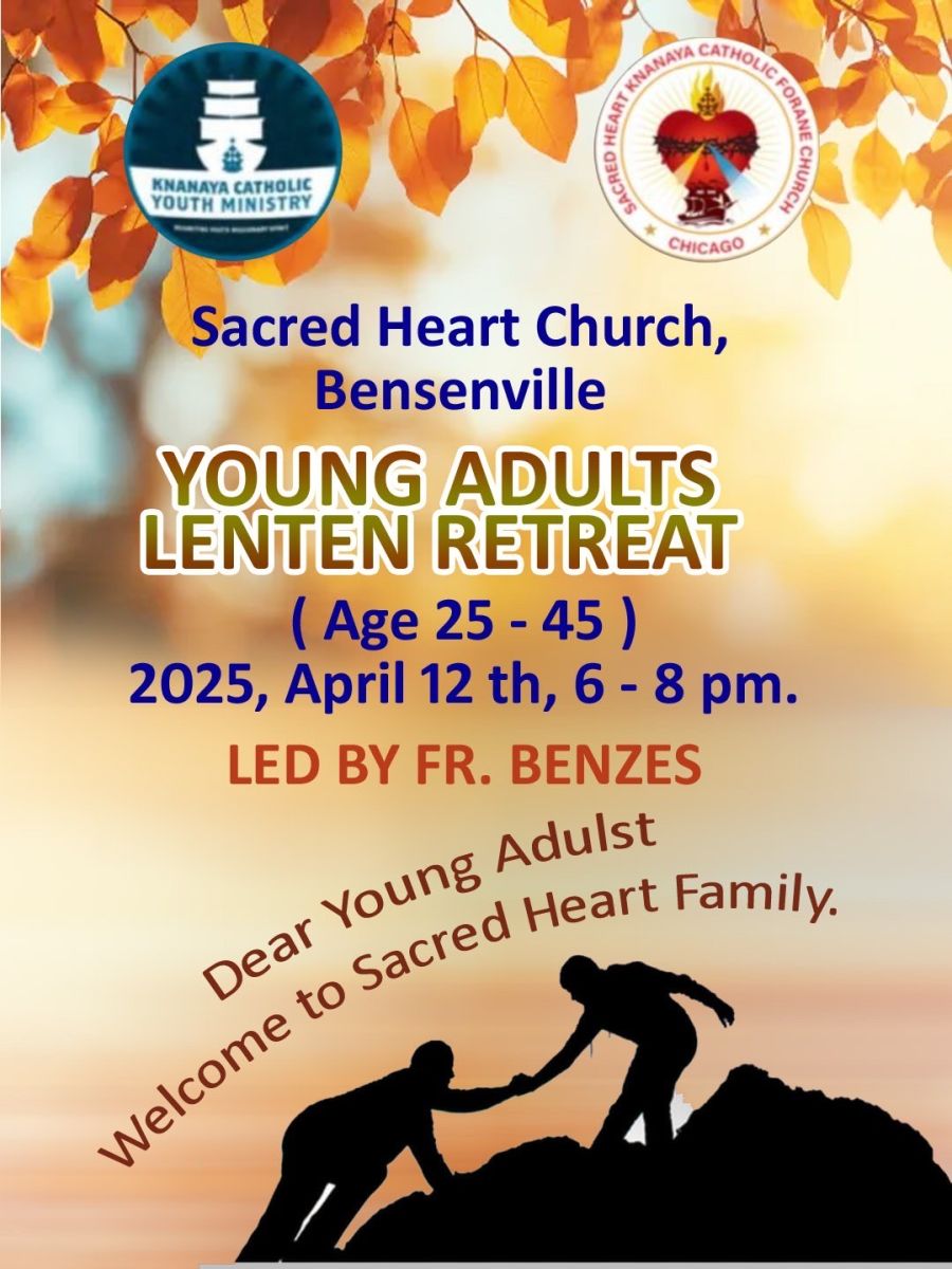 ചിക്കാഗോ: ബെൻസൻവിൽ തിരുഹൃദയ ക്നാനായ കത്തോലിക്കാ ഫൊറോന ദൈവാലയത്തിൽ ഏപ്രിൽ 12 ശനിയാഴ്ച വൈകിട്ട് 6 മുതൽ യങ് അഡൽറ്റ്സ് & കപ്പ്ൾസ് കൂട്ടായ്മ നടത്തപ്പെടുന്നു. സെ. ഇസിദോർ കാത്തലിക് ചർച്ച് ബ്ലുമിങ്ഡെയ്ൽ അസോസിയേറ്റ് വികാർ ഫാ. ബെൻസസ് കൂട്ടായ്മയിൽ ധ്യാന ചിന്തകൾ പ്രത്യേകമായി പങ്കുവെയ്ക്കും. അന്നേ ദിവസം രാത്രി 8.30 pm ന് ആരാധനയോടെ കൂട്ടായ്മ സമാപിക്കും. നോമ്പിന്റെ ചൈതന്യത്തിൽ ചെറുപ്പക്കാരുടെ ഈ കൂട്ടായ്മ ജിവിത നവീകരണത്തിന്റെ മുഹൂർത്തമാക്കി മാറ്റാൻ യങ് അഡൽറ്റ്സ് & കപ്പ്ൾസ് കമ്മിറ്റിയംഗങ്ങളുടെ നേതൃത്വത്തിൽ ഒരുക്കങ്ങൾ നടത്തപ്പെടുന്നു.