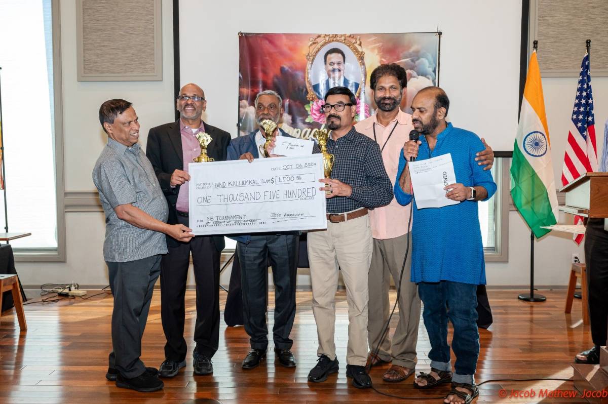 ഡിട്രോയിറ്റ്: ഒക്ടോബർ 4, 5, 6 തീയതികളിൽ സൗത്ത്ഫീൽഡിലുള്ള അപ്പച്ചൻ നഗറിൽ വെച്ച് നടന്ന ഇൻറർനാഷണൽ 56 കാർഡ് ഗെയിമും സിൽവർ ജൂബിലി ആഘോഷവും വൻ വിജയമായിരുന്നുവെന്ന് സംഘാടകർ അറിയിച്ചു.ഈ വർഷത്തെ ഇൻറർനാഷണൽ കാർഡ് ഗെയിമിൽ ലോകത്തി ന്റെ വിവിധ ഭാഗങ്ങളിൽ നിന്നുള്ള 90 ടീമുകളാണ് മാറ്റുരച്ചത്.