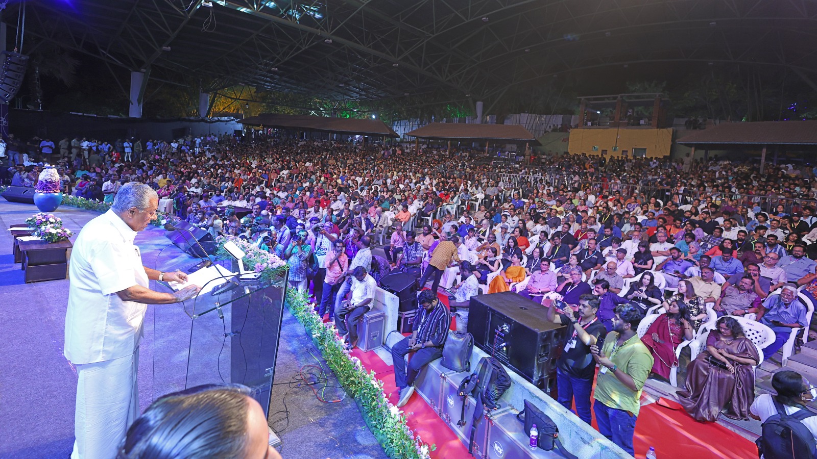 സിനിമാ ആസ്വാദകരുടേയും സിനിമാ രംഗത്തേക്ക് എത്തിപ്പെടാൻ ആഗ്രഹിക്കുന്നവരുടേയും സിനിമാ പ്രവർത്തകരുടേയും സംഗമവേദിയാണ് ചലച്ചിത്ര മേളയെന്നു മുഖ്യമന്ത്രി ചൂണ്ടിക്കാട്ടി. പുതിയ കാലഘട്ടത്തിൽ സിനിമാ രംഗത്തേക്കു കോർപ്പറേറ്റുകൾ കടന്നുവരുന്നുണ്ട്. ഒരു വ്യവസായമെന്ന നിലയിൽ അതു സ്വാഭാവികമാണ്. പക്ഷേ, അതിനുമപ്പുറം കോർപ്പറേറ്റ് താത്പര്യങ്ങൾക്കനുസൃതമായ പ്ലാറ്റ്ഫോമുകൾ സൃഷ്ടിക്കപ്പെടുന്നു. അവർക്ക് അനുയോജ്യമായ രീതിയിൽ സിനിമകൾ സൃഷ്ടിക്കപ്പെടാൻ സമ്മർദമുണ്ടാകുന്നു. ഇക്കാര്യങ്ങൾ ഗൗരവത്തോടെ കാണണം.
