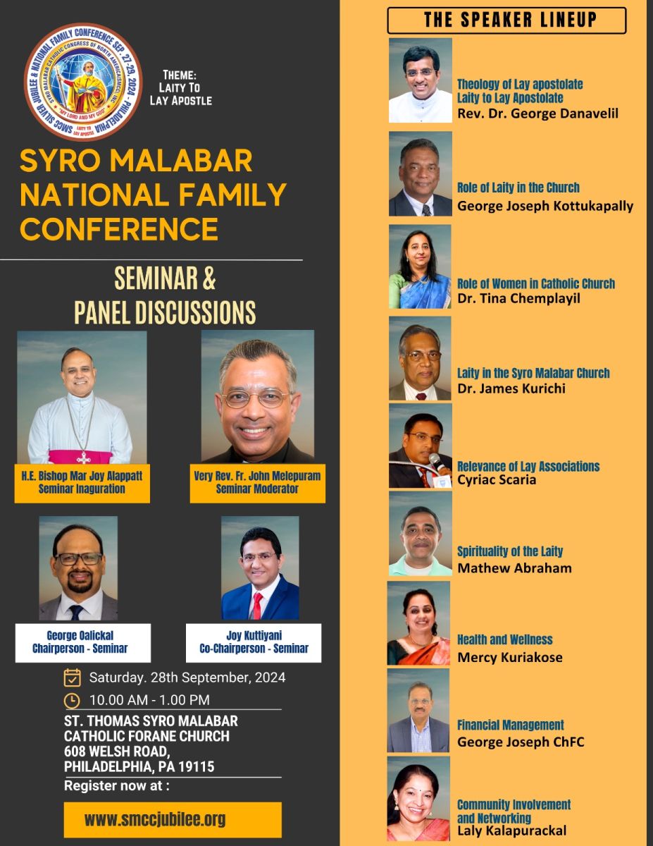 ശനിയാഴ്ച രാവിലെ 9:00 മണിക്ക് ആരംഭിക്കുന്ന വിശുദ്ധ കുര്ബ്ബാനക്ക് ശേഷം 11:00 മണിക്കാണ് സെമിനാര് ആരംഭിക്കുന്നത്. ജോര്ജ്ജ് ഓലിക്കല് ചെയര് പേഴ്സണായ സെമിനാറിന് റവ: വികാരി ജനറാള് ജോണ് മേലേപ്പുറം, ജോയി കുറ്റിയാനി എിവര് മോഡറേറ്ററായിരിക്കും. ഇടവക വികാരി റവ. ഡോ. ജോര്ജ്ജ് ദാനവേലിയുടെയും കോണ്ഫ്രന്സ് ചെയര്മാന് ജോര്ജ്ജ് മാത്യൂവിന്റെയും നേതൃത്വത്തില് വിവിധ കമ്മറ്റികള് പ്രവര്ത്തിക്കുന്നു .
