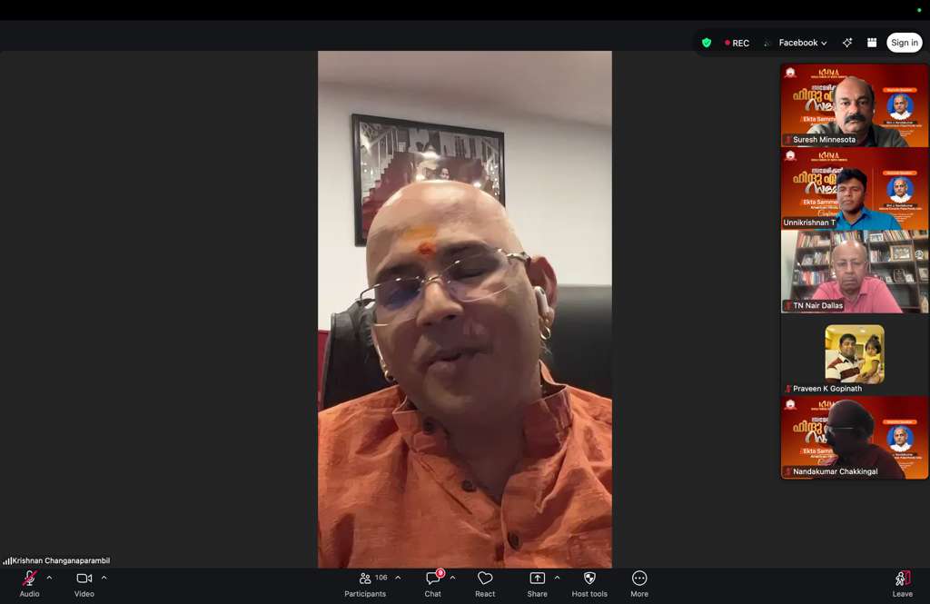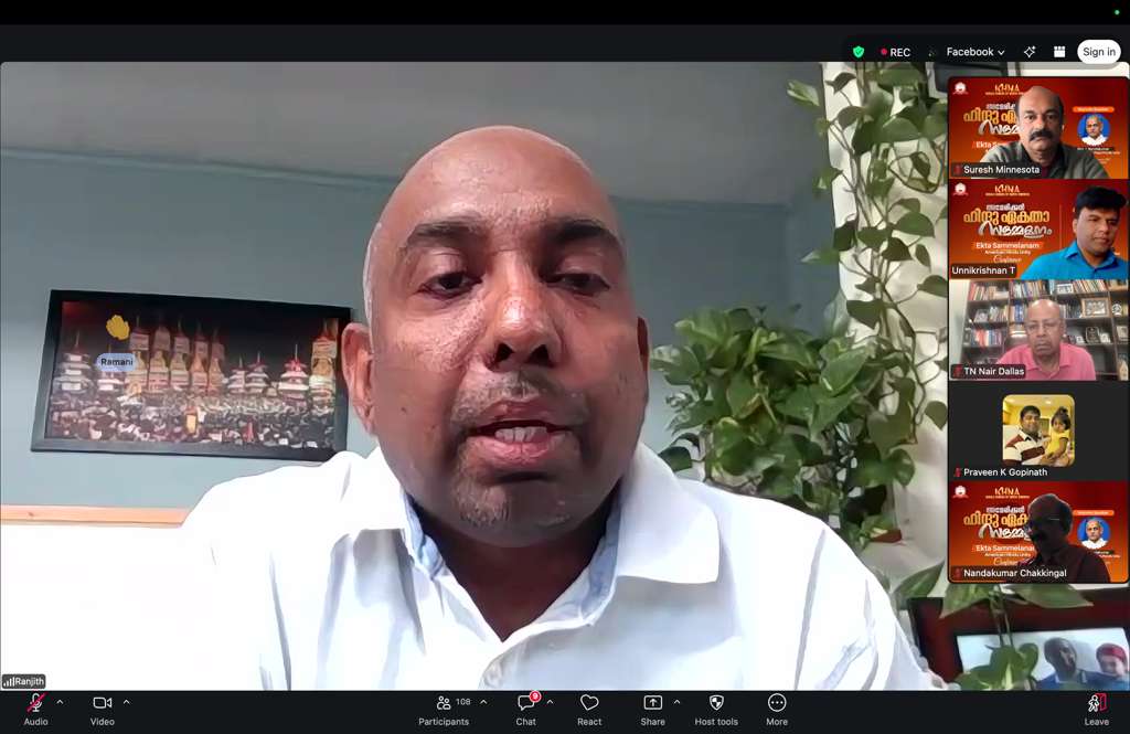 വൈദേശിക ആധിപത്യകാലത്ത് നഷ്ടപ്പെട്ട സാംസ്കാരിക പൈതൃകങ്ങളും ചരിത്രസാക്ഷ്യങ്ങളും വീണ്ടെടുക്കുന്ന ദേശീയ മുന്നേറ്റങ്ങളിൽ, സ്വാതന്ത്ര്യസമരകാലത്ത് വിദേശത്തിരുന്ന് ഇന്ത്യയെ പിന്തുണച്ച നേതാജി സുഭാഷ് ചന്ദ്രബോസ്, വീര സാവർക്കർ തുടങ്ങിയവരെപ്പോലെ ഇന്നത്തെ പ്രവാസ ഇന്ത്യക്കാരും മാതൃഭൂമിയോടൊപ്പം നിൽക്കണമെന്ന് നന്ദകുമാർ അഭ്യർത്ഥിച്ചു. “ഏകം സത് വിപ്രാ ബഹുധാ വദന്തി” എന്ന സനാതന സങ്കൽപ്പം എല്ലാ മതങ്ങളും അംഗീകരിച്ചാൽ ലോകത്തിലെ മതകലഹങ്ങൾ അവസാനിക്കുമെന്ന പ്രത്യാശയോടെയാണ് അദ്ദേഹം പ്രഭാഷണം ഉപസംഹരിച്ചത്.