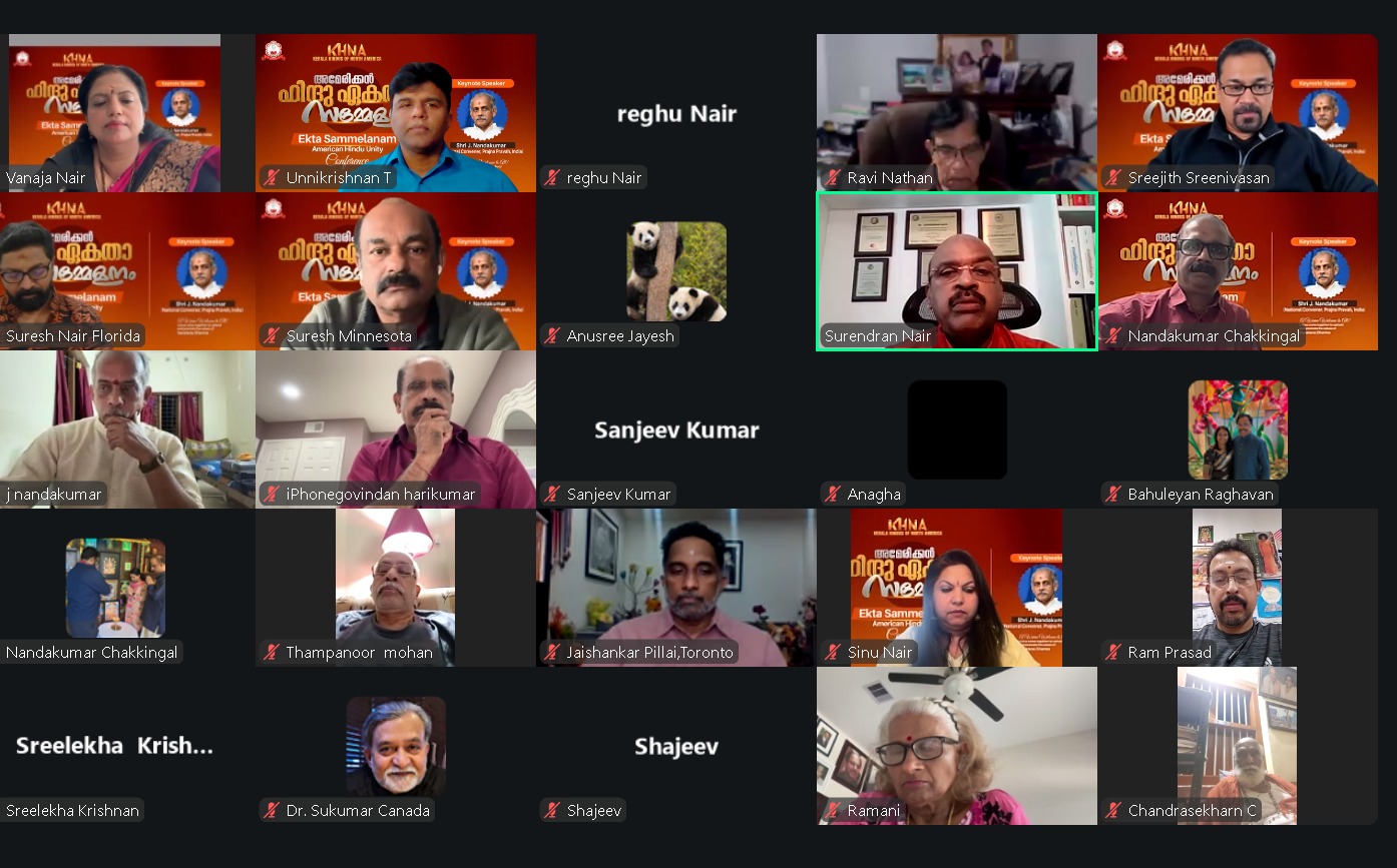 ഭാരതത്തിൽ ആരംഭിച്ച് ലോകമെമ്പാടും വ്യാപിച്ചു കൊണ്ടിരിക്കുന്ന ഹൈന്ദവ ഐക്യ പ്രസ്ഥാനത്തിന്റെ ഭാഗമായി, Kerala Hindus of North America (KHNA) ഓൺലൈൻ മുഖേന സംഘടിപ്പിച്ച അമേരിക്കൻ ഹിന്ദു ഏകതാ സമ്മേളനം, അൻപതിലധികം ഹിന്ദു കൂട്ടായ്മകളുടെ സാന്നിധ്യം കൊണ്ട് ശ്രദ്ധേയമായി.