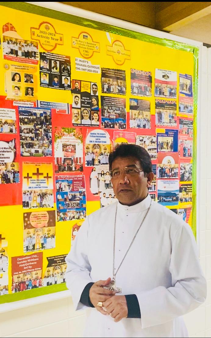 ചിക്കാഗോ: സെൻറ് മേരീസ് ക്നാനായ ദേവാലയത്തിലെ പ്രധാന തിരുനാളിൽ പങ്കെടുക്കാനായി ഹ്രസ്വ സന്ദർശനത്തിന് എത്തിയ ബിഷപ്പ് മാർ കുര്യൻ വയലിങ്കൽ സെൻമേരിസ് ഇടവകയിലെ മിഷൻ ലീഗ് യൂണിറ്റിന്റെ പ്രവർത്തനങ്ങളെ പ്രത്യേകം അഭിനന്ദിച്ചു സംസാരിച്ചു. സെൻമേരിസ് ഇടവകയിൽ വളരെ സ്തുത്യർഹമായ രീതിയിൽ പ്രവർത്തനം നടത്തുന്ന മിഷൻ ലീഗ് യൂണിറ്റിന് എല്ലാവിധ മംഗളങ്ങൾ അർപ്പിക്കുകയും ഇക്കാലം എത്രയും സംഘടന ചെയ്ത എല്ലാ നല്ല കാരുണ്യ പ്രവർത്തനങ്ങൾ വളരെ ശ്ലാഘനീയമെന്നും സെൻമേരിസ് മിഷൻലീഗ് യൂണിറ്റ് വഴി വളരെയേറെ പേർക്ക് നന്മ ലഭിച്ചു എന്നറിയാൻ സാധിച്ചതിൽ വളരെ സന്തോഷം ഉണ്ടെന്നും മുന്നോട്ടു ഉള്ള എല്ല പ്രവർത്തനങ്ങൾക്കും എല്ലാവിധ ആശംസകളും ദൈവാനുഗ്രഹവും നേരുന്നു എന്നും പിതാവ് പറയുകയുണ്ടായി.