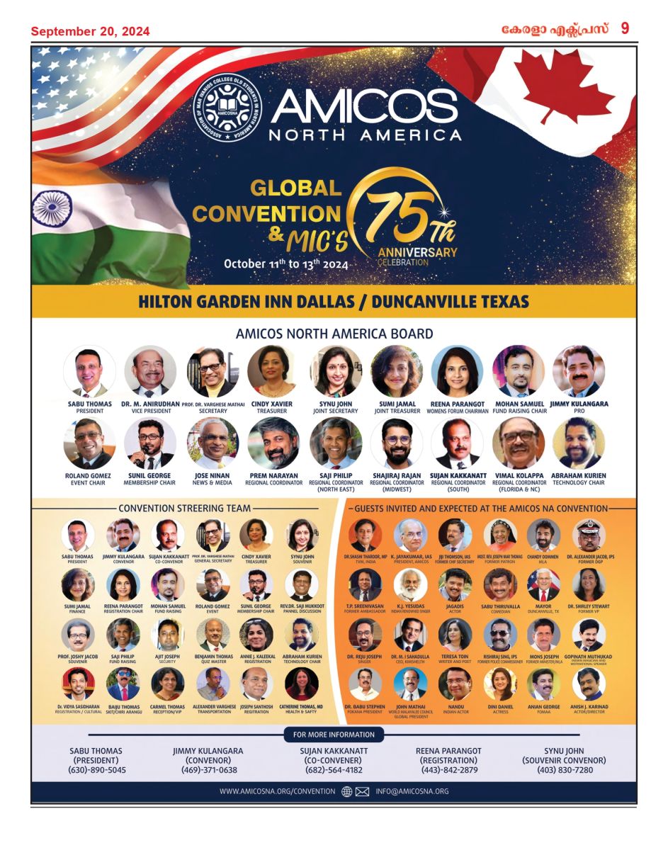 അസ്സോസിയേഷൻ ഓഫ് മാർ ഇവാനിയോസ് കോളേജ് ഓൾഡ് സ്റ്റുഡൻറ്സ് ഇൻ നോർത്ത് അമേരിക്ക ( AMICOSNA ) യുടെ നേതൃത്വത്തിൽ തിരുവനന്തപുരം മാർ ഇവാനിയോസ് കോളേജിൻ്റെ എഴുപത്തിയഞ്ചാം വാർഷികവും ഗ്ലോബൽ കൺ വൻഷനും 2024 ഒക്ടോബർ 11മുതൽ 13 വരെ ടെക്സാസിലെ ഹിൽട്ടൺ ഗാർഡൻ ഇൻ ഡാളസ് , ഡങ്കൻ വില്ലെയിൽ നടക്കുമ്പോൾ പ്രധാന അതിഥികളായി ഡോ. ശശി തരൂർ എം.പി, ഡോ. കെ. ജയകുമാർ ഐ. എ . എസ്, ജിജി തോംസൺ ഐ . എ .എസ് എന്നിവർ ചടങ്ങിന് മാറ്റ് കൂട്ടുവാൻ എത്തുമെന്ന് AMICOSNA പ്രസിഡൻ്റ് സാബു തോമസ് പറഞ്ഞു.ഡോ. ശശി തരൂരിൻ്റെ സാന്നിദ്ധ്യം അമേരിക്കൻ മലയാളികൾക്കും, മാർ ഇവാനിയോസിലെ പൂർവ്വ വിദ്യാർത്ഥികൾക്കും എന്തു കൊണ്ടും പുതിയ അനുഭവം ആയിരിക്കും. രാഷ്ട്രീയക്കാരൻ , എഴുത്തുകാരൻ, സാംസ്കാരിക പ്രവർത്തകൻ എന്ന നിലയിൽ ശശി തരൂരിൻ്റെ ലോക സാന്നിദ്ധ്യം മലയാളിക്ക് എക്കാലവും അഭിമാനമാണ്. ഐക്യ രാഷ്ട്ര സഭമുതൽ ഇന്ത്യൻ പാർലമെൻറ് വരെ നീണ്ട പ്രവർത്തന വിജയത്തിൻ്റെ ചരിത്രം മലയാളിക്ക് എന്നും പ്രചോദനമാണ്. അദ്ദേഹത്തിൻ്റെ സാന്നിദ്ധ്യം എല്ലാവർക്കും പുതിയ അനുഭവം സമ്മാനിക്കും.