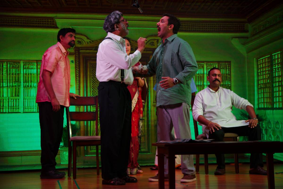 നാടകം തുടങ്ങി. സ്റ്റേജിൽ നിന്നുള്ള ശബ്ദങ്ങൾ മാത്രം. കാണികൾ നിശബ്ദം. ഇന്റർവെല്ലിന് മണി മുഴങ്ങുംവരെ കയ്യടികളും നർമ രസപ്രദങ്ങളായ രംഗങ്ങൾ വരുമ്പോഴുണ്ടാകുന്ന ചിരിയും മാത്രം. ഇന്റർവെല്ലിന് കാപ്പിയും പലഹാരങ്ങളും റെഡി. ഇന്റർവെല്ലിന് ശേഷം ഏറ്റവും ഉദാത്തമായ രംഗങ്ങൾ. ഉന്നതമായ ജീവിതദർശനങ്ങളിലേക്ക് സമൂഹത്തെ നയിക്കാൻ പര്യാപ്തമായ നാടകീയരംഗങ്ങളും, ശബ്ദവിന്യാസങ്ങളും, ലൈറ്റിംഗുകളും.