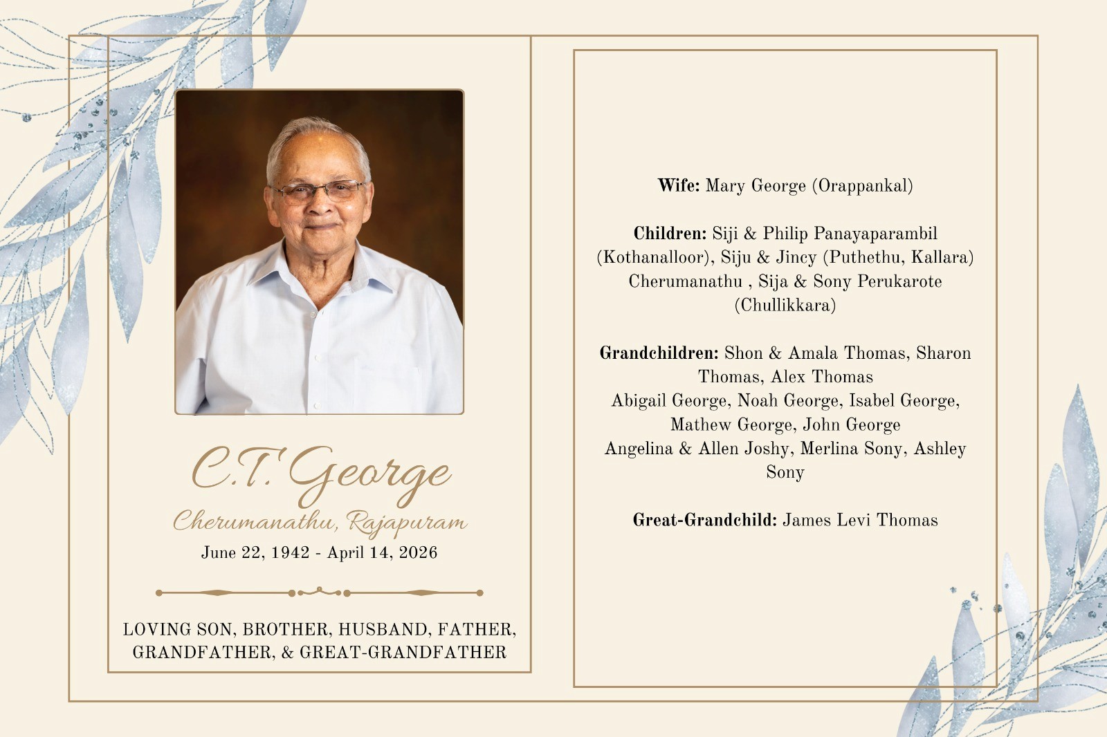 കൊച്ചുമകൻ: ജെയിംസ് ലീവായി തോമസ്.