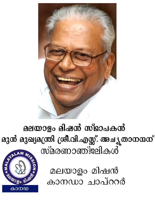 കാൽഗറി : മലയാളം മിഷൻ സ്ഥാപകനും മുൻ മുഖ്യമന്ത്രിയുമായിരുന്ന ശ്രീ വി.എസ്സ് അച്യുതാനന്ദനെ അനുസ്മരിച്ചു് കാനഡ ചാപ്റ്റർ . ലോകമെമ്പാടുമുള്ള കേരളീയരുടെ പുതുതലമുറയ്ക്ക് മലയാളം ഭാഷ പഠിക്കാനും, മലയാള നാടിന്റെ സംസ്കാരം പകർന്നുകൊടുക്കാനും വേണ്ടി ദീർഘവീക്ഷണത്തോടെ ശ്രീ വി.എസ്സ് അച്യുതാനന്ദൻ 2009 , ജൂൺ 2 ന് ഉത്ഘാടനം ചെയ്ത , ഇന്ന് ലോകമെമ്പാടും അമ്പതിനായിരത്തിൽപരം പഠിതാക്കൾ ഭാഗമായിരിക്കുന്ന മലയാളം മിഷൻറെ സ്ഥാപകനെ മലയാളം മിഷൻ കാനഡ ചാപ്റ്റർ പ്രവർത്തകർ അനുസ്മരിച്ചു.