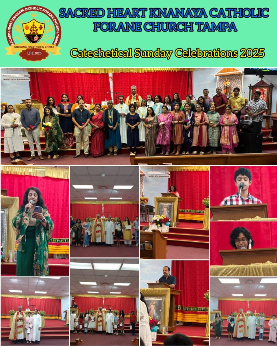 താമ്പാ (ഫ്ലോറിഡ): താമ്പാ സേക്രഡ് ഹാർട്ട് ക്നാനായ കത്തോലിക്കാ ഫൊറോനാ പള്ളിയിൽ മതബോധന ഞായറാഴ്ച സമുചിതമായി ആചരിച്ചു. അന്നേദിവസം വിശ്വാസ പരിശീലന അദ്ധ്യാപകരെ ആദരിക്കുകയും പ്രത്യേക പ്രാത്ഥന നടത്തുകയും ചെയ്തു. വിശുദ്ധ കുർബാനക്ക് ഫാ. ജോസഫ് ഓലിക്കര കാർമ്മികത്വം വഹിച്ചു.