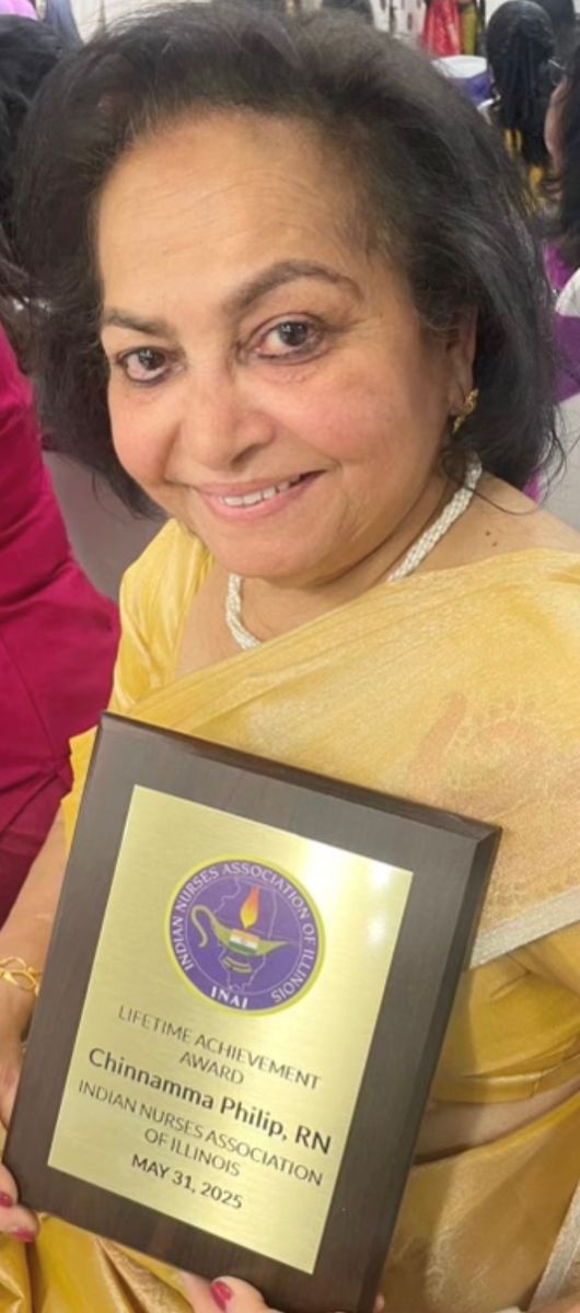 മനുഷ്യജീവിതം ഭംഗിയുള്ളതാകുമ്പോഴും സുരക്ഷിതമാക്കുമ്പോഴും മാലാഖമാർക്ക് ലോകം ചില ആദരവുകൾ നൽകാറുണ്ട്. അത്തരത്തിൽ ഒന്ന് ചിന്നമ്മയേയും തേടിയെത്തി. ഐ.എൻ.എ.ഐയിൽ (INAI) നിന്ന് ലൈഫ് ടൈം അച്ചീവ്മെന്റ് അവാർഡ് ലഭിക്കുകയുണ്ടായി. രജിസ്റ്റേർഡ് നേഴ്സായി 35 വർഷത്തിലധികം പ്രായോഗിക ക്ലിനിക്കൽ പരിചയമുള്ള അവർ, ഒാപ്പൺ ഹാർട്ട് യൂണിറ്റ്, ന്യൂറോ ഐസിയു, കൊറോണറി കെയർ യൂണിറ്റ് (സിസിയു), സ്റ്റെപ്പ്ഡൗൺ യൂണിറ്റ്, ഒാങ്കോളജി ക്ലിനിക് എന്നിവയുൾപ്പെടെ വിവിധ മേഖലകളിൽ ഗണ്യമായ സംഭാവനകൾ നൽകിയിരുന്നു.