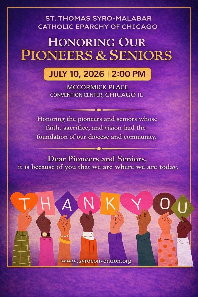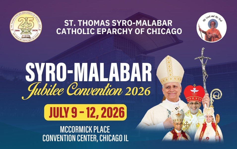 ഷിക്കാഗോ സീറോ മലബാർ രൂപതയുടെ സിൽവർ ജൂബിലി ആഘോഷങ്ങളുടെ സമാപനത്തോടനുബന്ധിച്ച് 2026 ജൂലൈ 9, 10, 11, 12 തീയതികളിൽ ഷിക്കാഗോയിലെ മക്കോർമിക് പ്ലേസ് കൺവൻഷൻ സെന്ററിൽ വെച്ച് നടക്കുന്ന സീറോ മലബാർ കൺവൻഷനിലാണ് ഈ സംഗമം.
