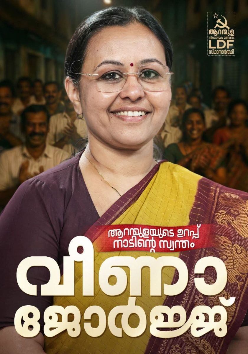 ആറന്മുള മന്ത്രി വീണ ജോർജ് ഇത് മൂന്നാം തവണയാണ് മണ്ഡലത്തിൽ ജനവിധി തേടുന്നത്. സിറ്റിങ് എംഎൽഎ ആയ വീണ ജോർജ് കഴിഞ്ഞ രണ്ടു തവണയും മത്സരിച്ചു വിജയിച്ച മണ്ഡലത്തിൽ ഇത് മൂന്നാം തവണയാണ് മത്സരിക്കുന്നത്. 2016 ലാണ് വീണ ജോർജ് മണ്ഡലത്തിൽ ആദ്യം സ്ഥാനാർത്ഥി ആകുന്നത്.