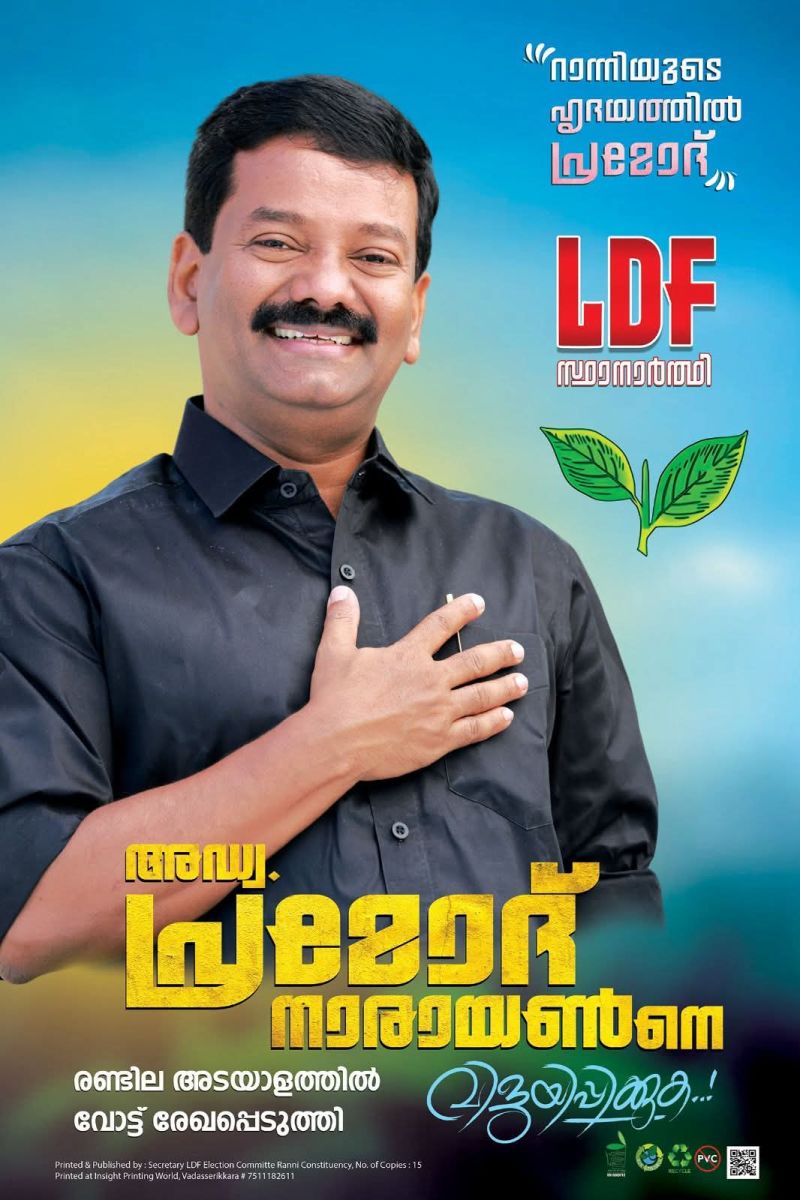 റാന്നി സിറ്റിംങ് എംഎൽഎ കേരള കോണ്ഗ്രസ് എമ്മിലെ പ്രമോദ് നാരായണൻ ആണ് എല്.ഡി.എഫ് സ്ഥാനാർത്ഥി. തുടർച്ചയായി രണ്ടാം തവണയാണ് പ്രമോദ് നാരായൺ മത്സരിക്കുന്നത്. ട്വൻ്റി ട്വൻ്റിയിലെ തോമസ് കെ സാമുവൽ ആണ് എൻഡിഎ സ്ഥാനാർഥി. യുഡിഎഫ് സ്ഥാനാർത്ഥിയുടെ ഔദ്യോഗിക പ്രഖ്യാപണം ഉടൻ ഉണ്ടാകും.
