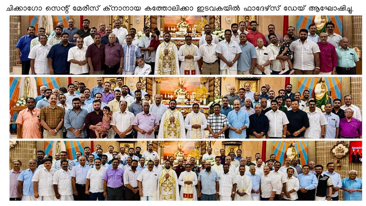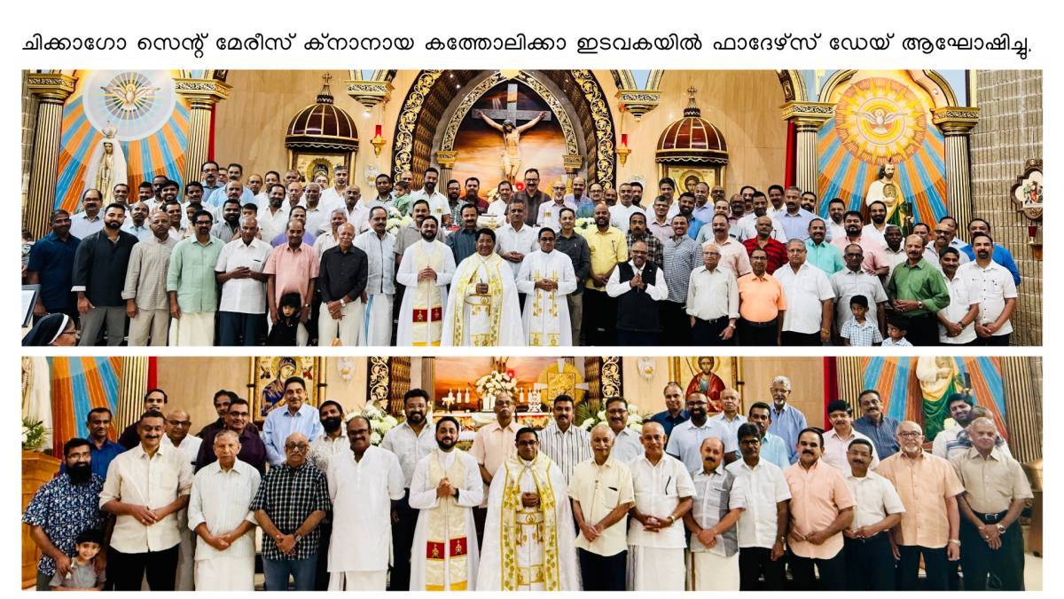 ചിക്കാഗോ: ചിക്കാഗോ സെന്റ് മേരീസ് ക്നാനായ കത്തോലിക്കാ ഇടവകയിൽ ഫാദേഴ്സ് ഡേയ് ആഘോഷിച്ചു. ജൂൺ 15 ഞായറാഴ്ച്ചയിലെ മൂന്നു കുർബ്ബാനയ്ക്ക് ശേഷവും കുർബ്ബാനയിൽ പങ്കെടുത്ത പിതാക്കളെ സമ്മാനം നൽകി ആദരിച്ചുകൊണ്ടായിരുന്നു ഫാദേഴ്സ് ഡേയ് സംഘടിപ്പിച്ചത്. കൂടാതെ ഇടവകയിലെ പിതാക്കൾക്ക് വേണ്ടി നടത്തപ്പെട്ട ക്വിസ് മത്സരം ഏറെ ശ്രദ്ധേയമായി. വികാരി ഫാ. സിജു മുടക്കോടിൽ, അസി. വികാരി ഫാ. അനീഷ് മാവേലിപുത്തെൻപുര എന്നിവർ ആഘോഷങ്ങൾക്ക് നേതൃത്വം നൽകി. പരിശുദ്ധ ത്രിത്വത്തിന്റെ തിരുനാൾ ദിവസം കൂടിയായിരുന്ന ദിവസത്തിന്റെ മംഗളങ്ങൾ നേരുന്നതിനോടൊപ്പം കത്തോലിക്കാ സഭയിലെ സുപ്രധാനമായ തിരുനാളുകളിലൂടെ കടന്നുപോകുന്ന അനുഗ്രഹപൂർണമായ ജൂൺ മാസത്തിലെ ഈ ആഴ്ചകളിൽ ഏവർക്കും പ്രാർഥനാനിരതമായ ആശംസകൾ നേരുന്നതായി വികാരി ഫാ. സിജു മുടക്കോടിൽ അറിയിച്ചു. അസി. വികാരി ഫാ. അനീഷ് മാവേലിപുത്തെൻപുര ഇടവക സെക്രട്ടറി സി. ഷാലോം, കൈക്കാരന്മാരായ സാബു കട്ടപ്പുറം, ബിനു പൂത്തുറയിൽ, ലൂക്കോസ് പൂഴിക്കുന്നേൽ, ജോർജ്ജ് മറ്റത്തിപ്പറമ്പിൽ, യൂത്ത് കൈക്കാരൻ നിബിൻ വെട്ടിക്കാട്ട്, പാരിഷ് കൗൺസിൽ സെക്രട്ടറി സണ്ണി മേലേടം, പി. ആർ. ഓ. അനിൽ മറ്റത്തിക്കുന്നേൽ എന്നിവർ സജ്ജീകരണങ്ങൾക്ക് നേതൃത്വം നൽകി.