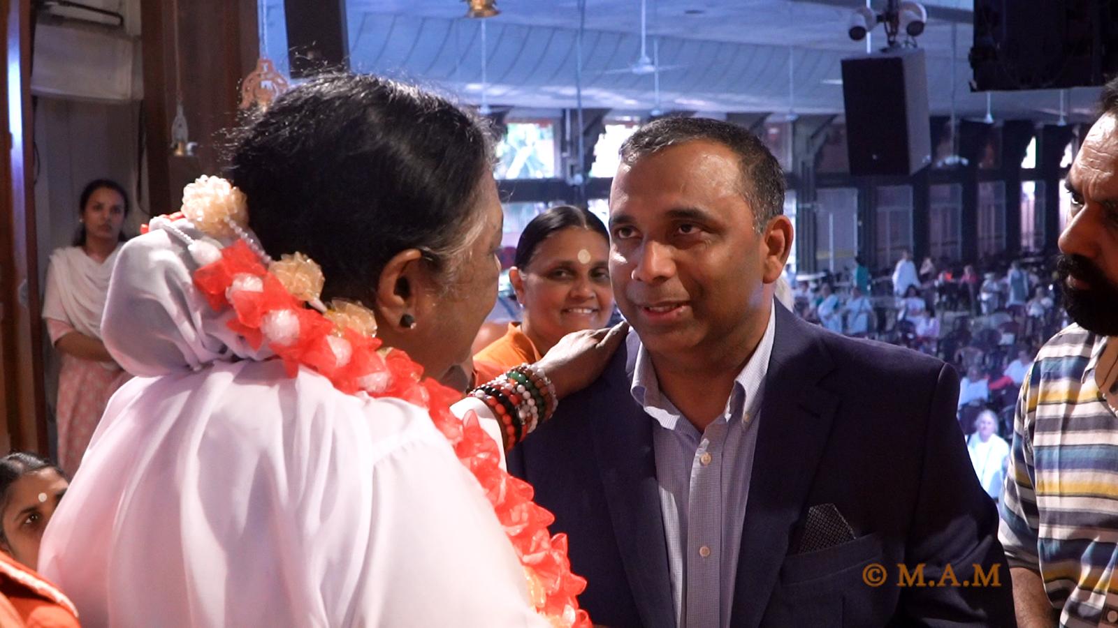 ഉപരാഷ്ട്രപതി സി. പി. രാധാകൃഷ്ണനുമായി കുടിക്കാഴ്ചക്ക് വേണ്ടി അദ്ദേഹത്തിന്റെ ഓഫീസിൽ ഇരിക്കുന്ന സമയത്തു മാതാ അമൃതാനന്ദമയിയുടെ ഓഫീസിലെ സീനിയർ ഡയറക്ടറുമായി നടന്ന അപ്രതീക്ഷിതമായ കുടിക്കാഴ്യാണ് ഈ മീറ്റിംഗിലേക്കു വഴിതെളിച്ചത് .