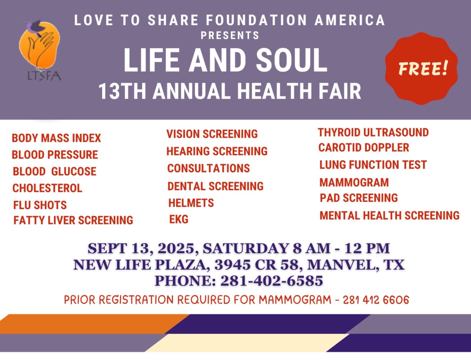 കൂടുതൽ വിവരങ്ങൾക്ക് 281 402 6585 എന്ന നമ്പറിൽ