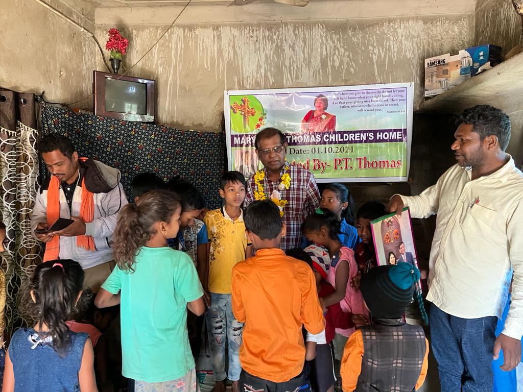 തന്റെ ജീവകാരുണ്യ പ്രവര്ത്തനങ്ങളുടെ പ്രചോദനം എക്കാലവും ഭാര്യ ലീലാമ്മയായിരുന്നു. സഹായം അഭ്യര്ത്ഥിച്ച് എത്തുന്ന ഏതൊരു കോളിനും ലീലാമ്മയായിരുന്നു വേഗം പരിഹാരം നിര്ദ്ദേശിക്കുക. തന്റെ രോഗം ഭേദമായാല് ഇന്ത്യയില് പിന്നോക്കം നില്ക്കുന്ന ഒഡീഷയില് ജീവകാരുണ്യ പ്രവര്ത്തനം ആരംഭിക്കണമെന്ന് ലീലാമ്മ പറയുമായിരുന്നു. പി. റ്റി. തോമസ് അന്നത് അത്ര കാര്യമായി എടുത്തിരുന്നില്ല. പക്ഷെ ഭാര്യയുടെ മരണശേഷം രണ്ട് മാസം കഴിഞ്ഞപ്പോള് ഒഡീഷയില് നിന്ന് ജഗനാഥ് ജാനി എന്നൊരാള് വിളിക്കുന്നു. വെള്ളപ്പൊക്കം അനാഥമാക്കിയ ഒരു ഗ്രാമത്തെക്കുറിച്ചും, അവിടുത്തെ കുട്ടികളെക്കുറിച്ചും സംസാരിച്ചു. കുട്ടികളുടെ വിദ്യാഭ്യാസത്തിന്റെ ഉത്തരവാദിത്വം ഏറ്റെടുക്കാമെന്ന് ഏറ്റു. അതൊരു നിയോഗമായിരുന്നു. അങ്ങനെ ഒഡീഷയില് 'മേരിക്കുട്ടി തോമസ് ചില്ഡ്രന്സ് ഹോം' എന്ന പേരില് ഒരു സ്ഥാപനം തുടങ്ങി. ലീലാമ്മയുടെ ആഗ്രഹം അങ്ങനെ പൂവണിയുന്നു എന്നതില് വലിയ സന്തോഷമുണ്ട്. ഓരോ തവണ നാട്ടില് വരുമ്പോഴും ഒഡീഷയ്ക്ക് പോകും. അവിടുത്തെ പ്രവര്ത്തനങ്ങള് വിലയിരുത്തും. കുട്ടികള്ക്ക് വേണ്ടതെല്ലാം നല്കും. ഒരു വലിയ പ്രസ്ഥാനമായി ഈ സ്ഥാപനം വളരുമ്പോള് ഏറ്റവും കൂടുതല് ധന്യയാകുന്നത് ലീലാമ്മയുടെ ആത്മാവ് ആയിരിക്കും എന്നതില് യാതൊരു സംശയവും ഇല്ല. കാരണം ഭാര്യയുടെ അവസാന നാളുകളിലെ ആഗ്രഹത്തിന് വേദനയുടേയും പ്രതീക്ഷയുടേയും സ്പര്ശമുണ്ട്.