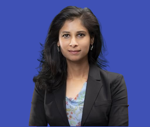 2019-ൽ ഐഎംഎഫിന്റെ ചീഫ് ഇക്കണോമിസ്റ്റായി ചുമതലയേറ്റ ആദ്യ വനിതയാണ് ഗോപിനാഥ്. കോവിഡ്-19 മഹാമാരിയും അതിന്റെ സാമ്പത്തിക പ്രത്യാഘാതങ്ങളും ഉൾപ്പെടെയുള്ള ആഗോള സാമ്പത്തിക പ്രതിസന്ധികളുടെ കാലഘട്ടത്തിൽ അവരുടെ നേതൃത്വം നിർണായകമായിരുന്നു. 2022 ജനുവരിയിൽ അവർ ഐഎംഎഫിലെ രണ്ടാമത്തെ ഉയർന്ന പദവിയായ ഫസ്റ്റ് ഡെപ്യൂട്ടി മാനേജിംഗ് ഡയറക്ടറായി നിയമിതയായി.