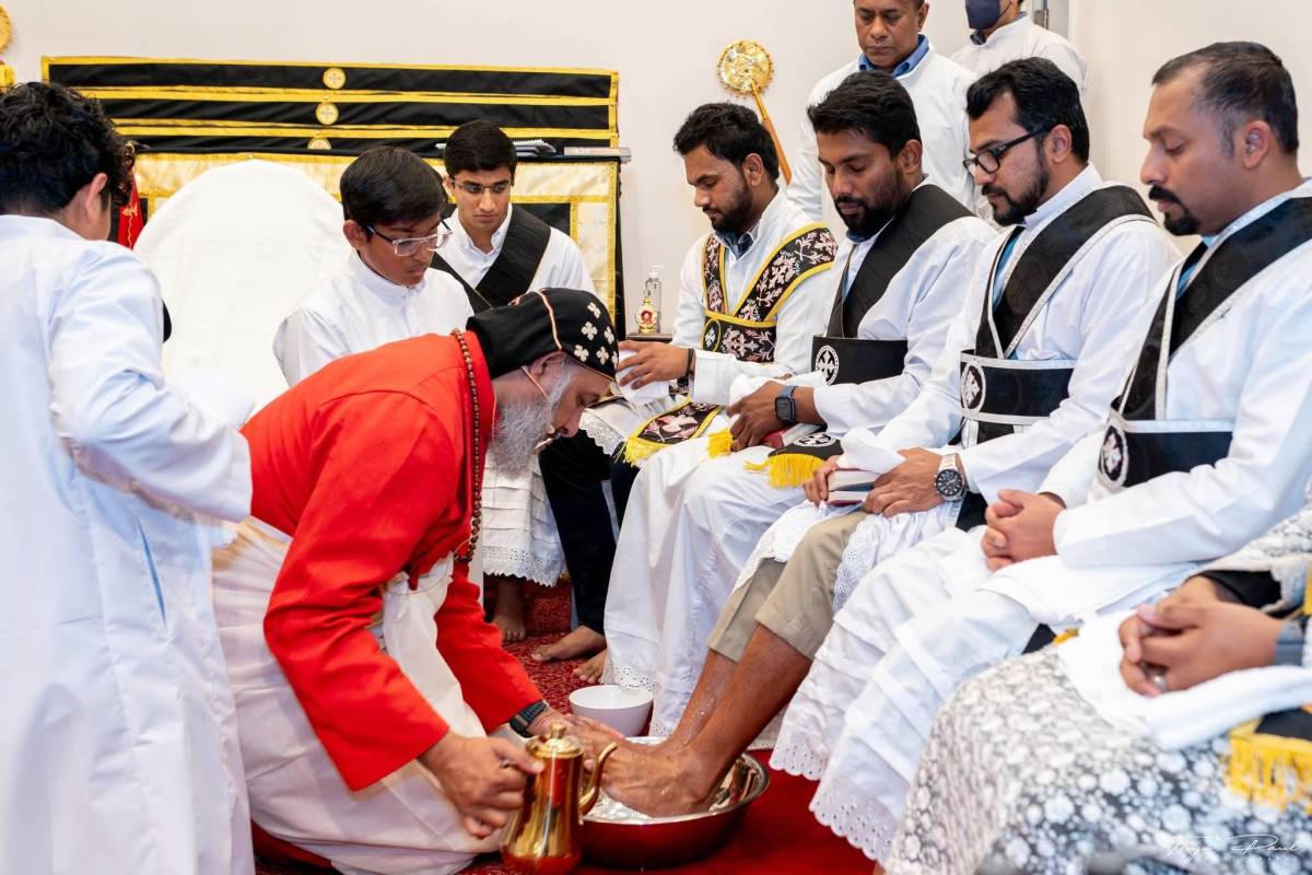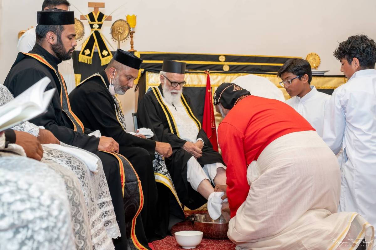 വിനയത്തിന്റെയും താഴാഴ്മയുടെയും മാതൃക നല്കിക്കൊണ്ട് വ്യാഴാഴ്ച നടന്ന കാല്കഴുകല് ശുശ്രൂഷയില് തിരുമേനി ഭക്തിയുടെ നിറവില് മൂന്ന് വൈദികരുടെയും ഒന്പത് ശെമ്മാശന്മാരുടെയും കാലുകള് കഴുകി.