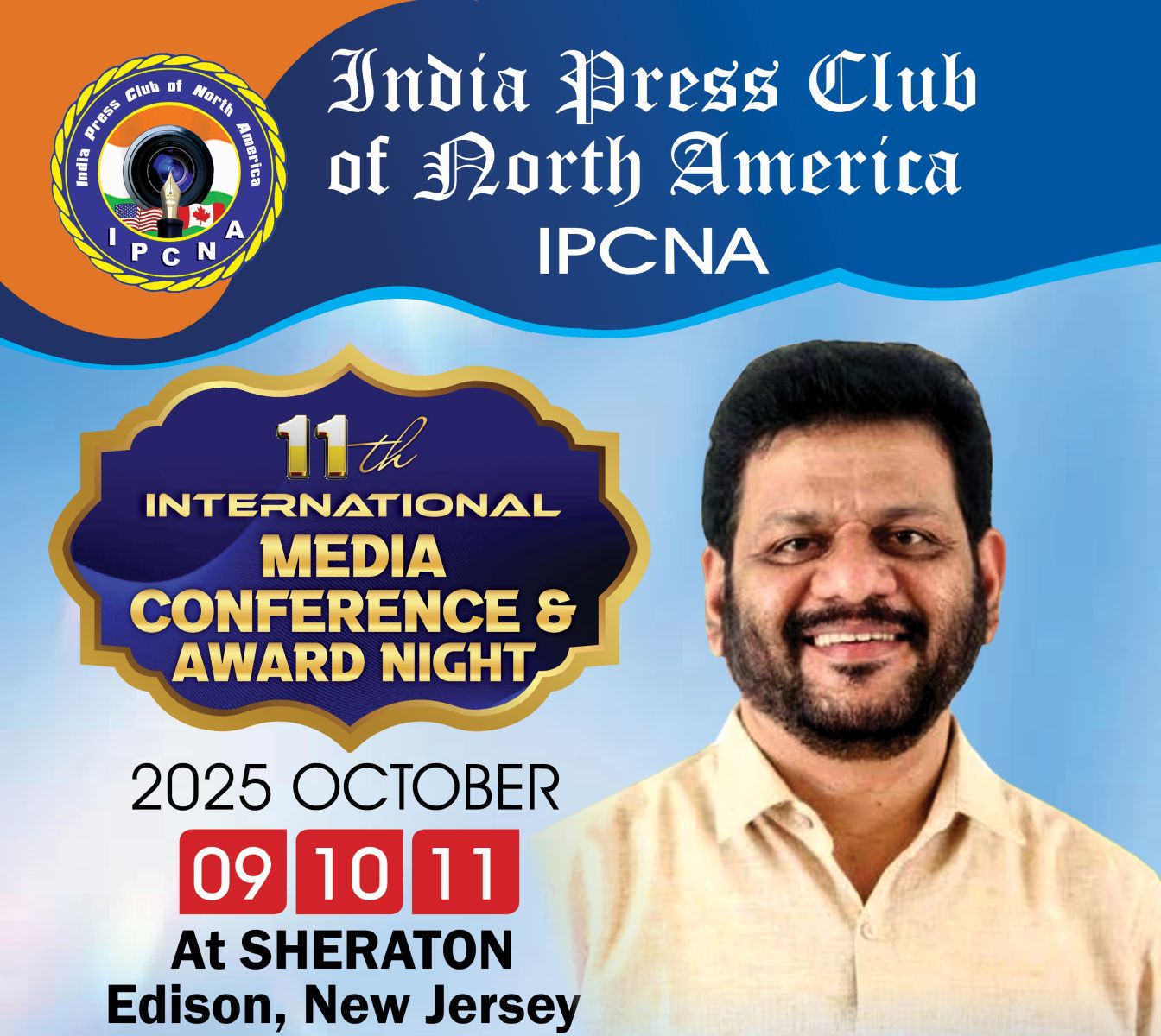 ഇന്ത്യാ പ്രസ് ക്ലബ് ഓഫ് നോർത്ത് അമേരിക്കയുടെ പതിനൊന്നാമത് അന്താരാഷ്ട്ര മാധ്യമ സമ്മേളനത്തിൽ മുഖ്യാതിഥിയായി വി.കെ ശ്രീകണ്ഠൻ എം.പി പങ്കെടുക്കുമെന്ന് നാഷണൽ സെക്രട്ടറി ഷിജോ പൗലോസ് അറിയിച്ചു. . 2025 ഒക്ടോബർ 9, 10, 11 തീയതികളിൽ ന്യൂജേഴ്സിയിലെ എഡിസൺ ഷെറാട്ടണിൽ വെച്ചാണ് അന്താരാഷ്ട്ര മാധ്യമസമ്മേളനം അരങ്ങേറുന്നത്.