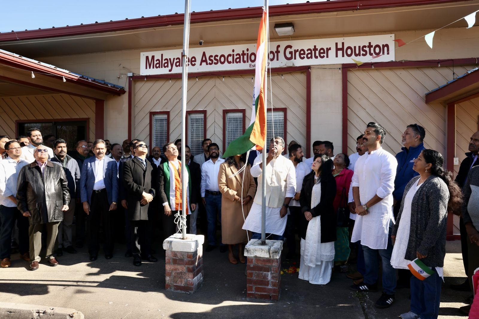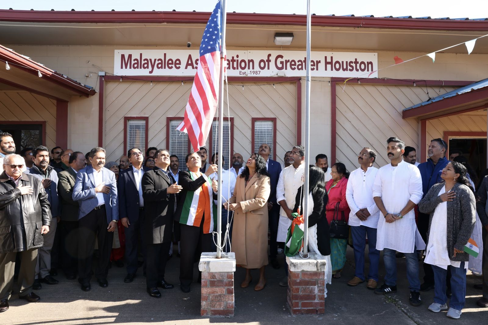 അതിശീത കാലാവസ്ഥയിലുള്ള ശനിയാഴ്ച്ച രാവിലെ കേരള ഹൗസിൽ എത്തി ചേർന്ന നൂറ് കണക്കിന് മാഗ് അംഗങ്ങളുടെ സാന്നിദ്ധ്യത്തിൽ ഫോർട്ട് ബെൻഡ് കൗണ്ടി ജഡ്ജ് കെ.പി ജോർജ്, സ്റ്റാഫോർഡ് സിറ്റി മേയർ കെൻ മാത്യു,ജഡ്ജ് ജൂലി മാത്യു,അസ്സോസിയേറ്റ് ജഡ്ജ് ജെറ്റി ഏബ്രഹാം എന്നിവർ ചേർന്ന് അമേരിക്കൻ പതാക ഉയർത്തി.