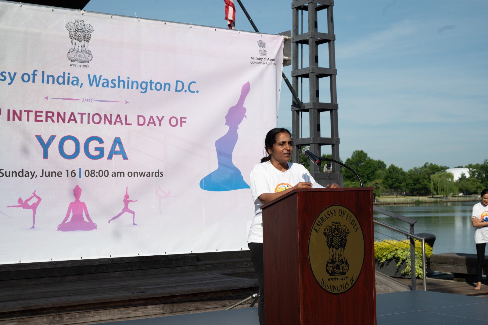 വാഷിംഗ്ടൺ, ഡിസി:- അന്താരാഷ്ട്ര യോഗ ദിനത്തിൻ്റെ പത്താം വാർഷീകത്തിനു മുന്നോടിയായി ഇന്ത്യൻ എംബസി യോഗ സെഷൻ സംഘടിപ്പിച്ചു.യുഎസിലെ ഇന്ത്യൻ എംബസിയിലെ ഡെപ്യൂട്ടി അംബാസഡർ ശ്രീപ്രിയ രംഗനാഥൻ്റെ നേതൃത്വത്തിൽ ജൂൺ 19 ന് വാർഫിൽ ഒരു വലിയ ജനക്കൂട്ടം തടിച്ചുകൂടി.