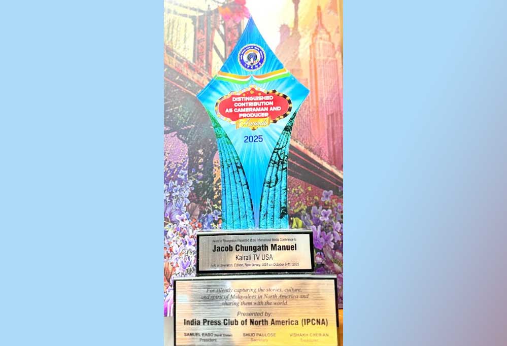 എഡിസൺ, ന്യു ജേഴ്സി: ദൃശ്യമാധ്യമ രംഗത്തെ മികച്ച പ്രവർത്തനങ്ങൾക്ക് ജേക്കബ് മാനുവലിനെ ഇന്ത്യ പ്രസ് ക്ലബ് ഓഫ് നോർത്ത് അമേരിക്കയുടെ അന്താരാഷ്ട്ര കോൺഫറൻസിൽ ആദരിച്ചു. എഡിസൺ ഷെറാട്ടണിൽ നടന്ന സമ്മേളനത്തിൽ റാന്നി എം.എൽ.എ പ്രമോദ് നാരായൺ അവാർഡ് സമ്മാനിച്ചു. എം.പി.മാരായ എം.കെ. പ്രേമചന്ദ്രൻ, വി.കെ. ശ്രീകണ്ഠൻ, ഇന്ത്യ പ്രസ് ക്ലബ് പ്രസിഡന്റ് സുനിൽ ട്രൈസ്റ്റാർ, സെക്രട്ടറി ഷിജോ പൗലോസ്, അഡ്വൈസറി ബോർഡ് ചെയർ സുനിൽ തൈമറ്റം, മാധ്യമ പ്രവർത്തക സുജയ് പാർവതി എന്നിവരുടെ സാന്നിധ്യത്തിലായിരുന്നു അവാർഡ് സമ്മാനിച്ചത്.