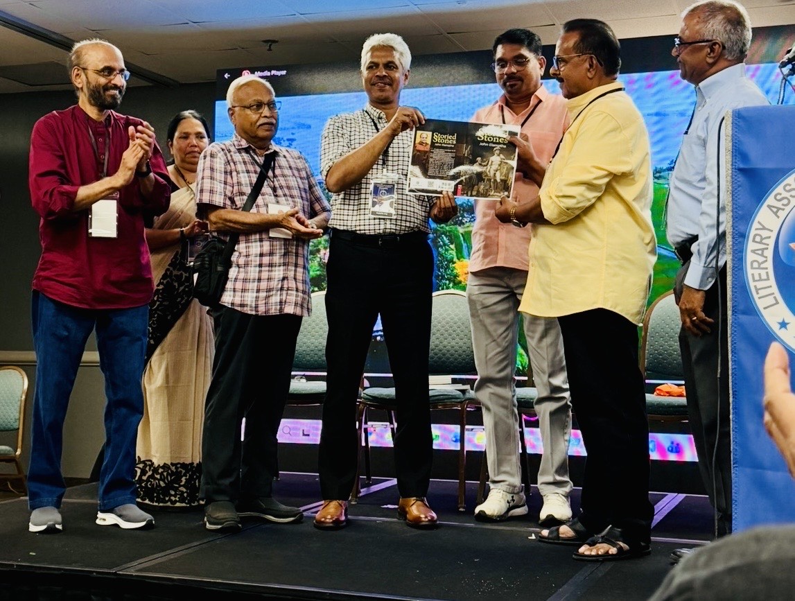 ഡാളസ്: പ്രസിദ്ധ കവിയും കഥാകൃത്തും നോവലിസ്റ്റുമായ ജോണ് ഇളമതയുടെ 'കഥ പറയുന്ന കല്ലുകള്' എന്ന ചരിത്രനോവലിന്റെ ഇംഗ്ലീഷ് പരിഭാഷ "STORIED STONES"എന്ന പുസ്തകത്തിന്റെ കവര് പ്രകാശനം ഡാളസ്സില് നടത്തപ്പെട്ട ലാനയുടെ പതിന്നാലാം ദ്വൈവാര്ഷിക സമ്മേളനത്തില് വെച്ച് പ്രകാശനം ചെയ്തു.