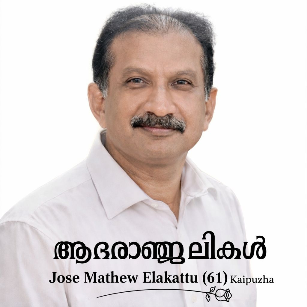 കൈപ്പുഴ: ഇലക്കാട്ട് ജോസ് മാത്യു (61) അന്തരിച്ചു. ഇലക്കാട്ട് പരേതനായ ഇ.ജെ. ജോസഫിന്റെയും മേരിക്കുട്ടി ജോസഫിന്റെയും മകനാണ് പരേതന്. ഭാര്യ ബിന്ദു പന്നിവേലില് കുടുംബാംഗമാണ്. മക്കള്: ബാലു ഇലക്കാട്ട്, ദിലു ഇലക്കാട്ട്. സഹോദരങ്ങള്: സിറില് ജോസ് (ന്യൂയോര്ക്ക്), ജിജി ലൂക്കോസ് കൊടുവത്തറ (ചിക്കാഗോ). സംസ്കാരം ജനുവരി 19-ന് തിങ്കളാഴ്ച വൈകുന്നേരം മൂന്നിന് കൈപ്പുഴ സെന്റ് ജോര്ജ് ക്നാനായ ഫൊറോനാ പള്ളിയില്.