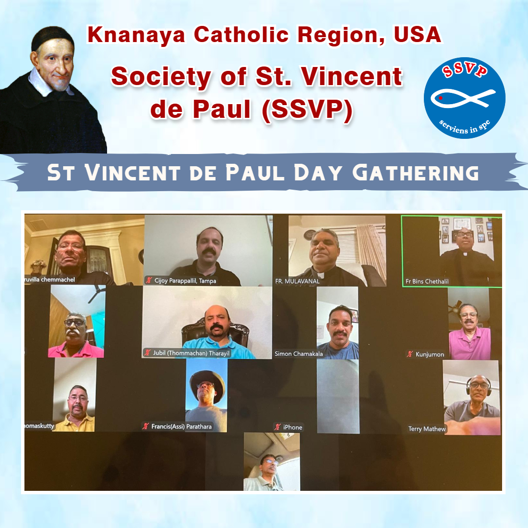 ചിക്കാഗോ: വടക്കേ അമേരിക്കയിലെ ക്നാനായ കാത്തലിക് റീജീയന്റെ നേതൃത്വത്തിൽ വി. വിൻസെന്റ് ഡി പോളിന്റെ തിരുന്നാളിനോട് അനുബദ്ധിച്ച് വിൻസെന്റ് ഡി പോൾ ദിന കൂട്ടായ്മ സംഘടിപ്പിച്ചു. ചിക്കാഗോ രൂപതാ വികാരി ജനറാളും ക്നാനായ റീജീയൻ ഡയറക്ടറുമായ ഫാ.തോമസ്സ് മുളവനാൽ പരിപാടികൾ ഉദ്ഘാടനം ചെയ്തു. ഫാ. ബിൻസ് ചേത്തലിൽ ഏവരെയും സംഗമത്തിലേക്ക് സ്വാഗതം ചെയ്തു.