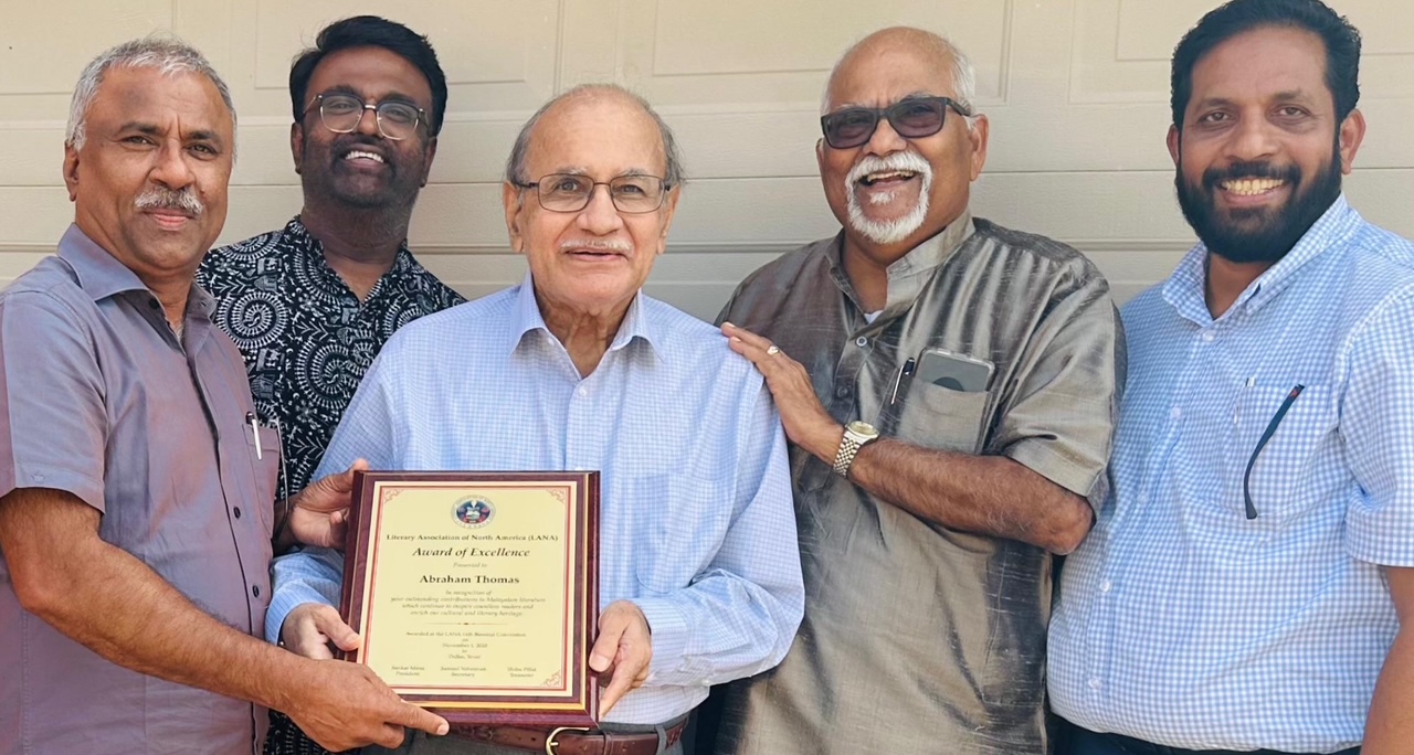 ഡാളസ്: ലിറ്റററി അസോസിയേഷൻ ഓഫ് നോർത്ത് അമേരിക്ക (ലാന) ഡാലസിലെ പ്രമുഖനും മുതിർന്ന സാഹിത്യകാരനുമായ ശ്രീ. എബ്രഹാം തോമസിനെ പ്രശംസാഫലകം നൽകി ആദരിച്ചു.