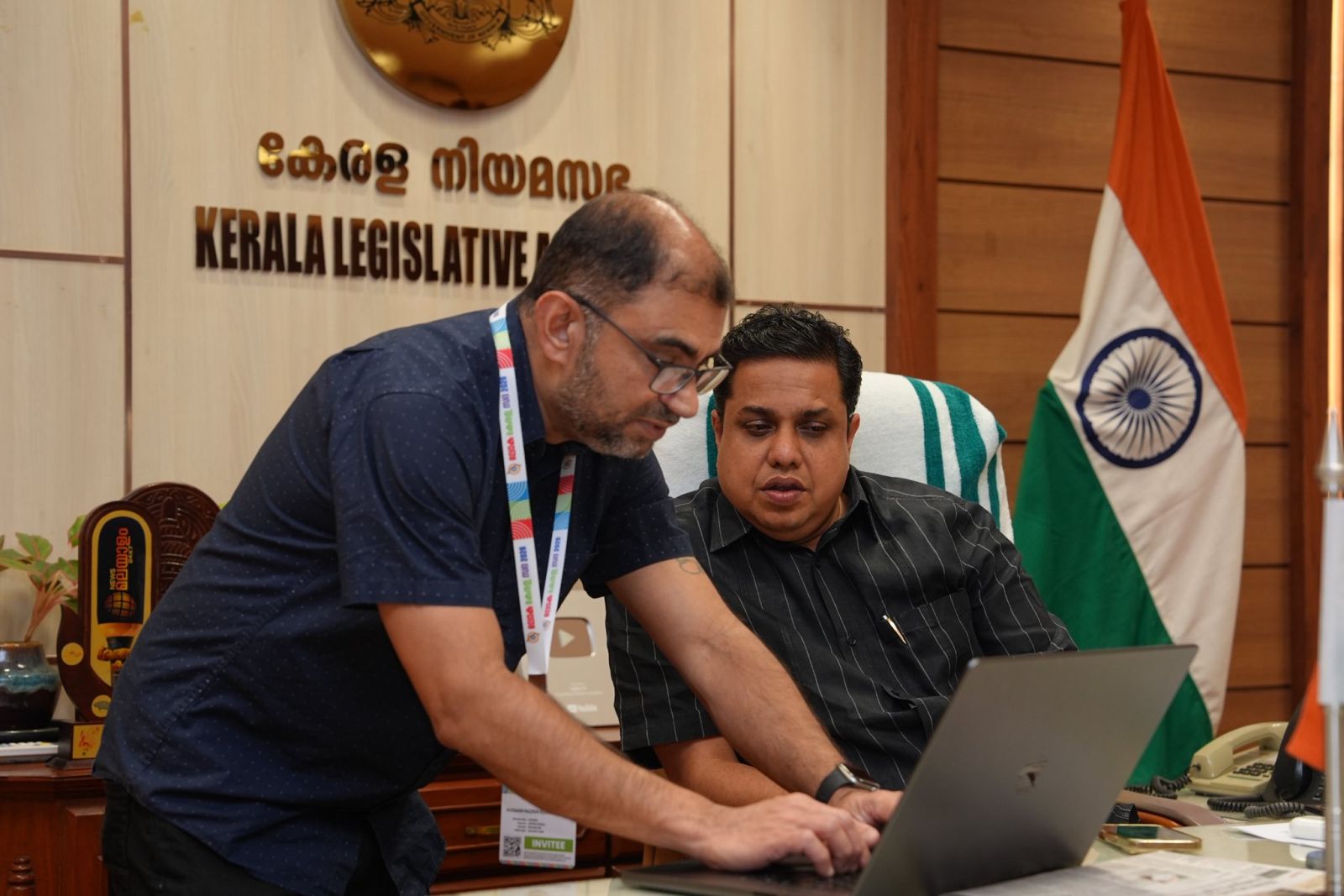 ചിത്രത്തിൽ Multi agentic AI program demo യും മറ്റു കാര്യങ്ങളും ബഹുമാനപെട്ട സ്പീക്കർ മുൻപാകെ അവതരിപ്പിക്കുന്നു .