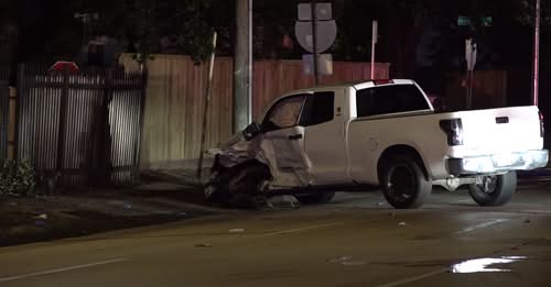 വിവരമറിഞ്ഞയുടൻ ഹൂസ്റ്റൺ പോലീസ് വാഹനം കണ്ടെത്തുകയും പിന്തുടരുകയും ചെയ്തു. അമിത വേഗതയിൽ വാഹനമോടിച്ച പ്രതി, ടെലിഫോൺ റോഡിന്റെയും ഡിക്സി ഡ്രൈവിന്റെയും കവലയിൽ വെച്ച് നിയന്ത്രണം വിട്ട് എതിരെ വന്ന മറ്റൊരു വാഹനത്തിൽ ഇടിച്ചു. അപകടത്തിൽ ഇടിച്ച വാഹനത്തിലെ പ്രതിയെയും യാത്രക്കാരെയും ആശുപത്രിയിൽ പ്രവേശിപ്പിച്ചു. ഇവരുടെ പരിക്കുകൾ ജീവന് ഭീഷണിയല്ലെന്ന് പോലീസ് അറിയിച്ചു.