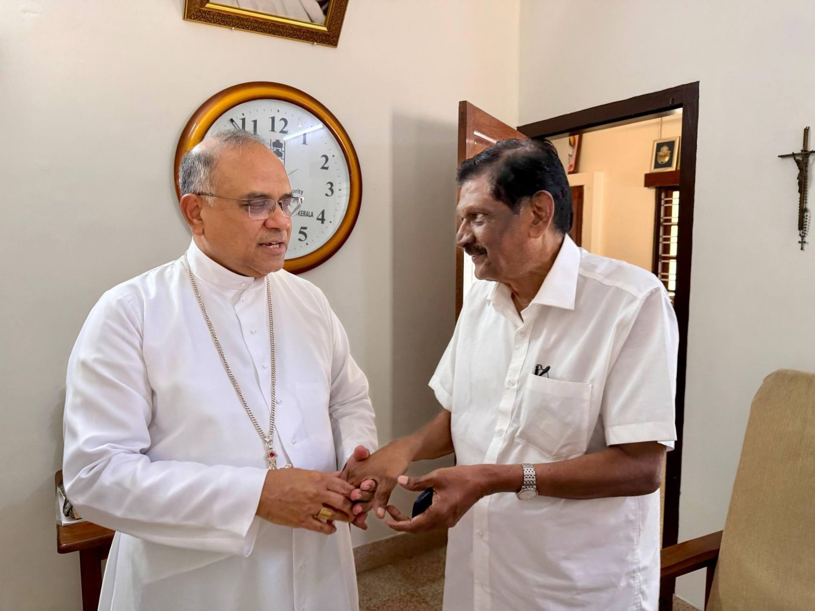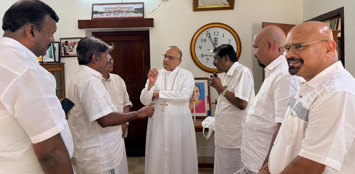 കേരള കോൺഗ്രസ്സ് സംസ്ഥാന കോർഡിനേറ്റർ അപു ജോൺ ജോസഫ് ഭവനത്തിലെത്തിയ ബിഷപ്പിനെ സ്വീകരിച്ചു. കേരള കോൺഗ്രസ്സ് വൈസ് ചെയർമാൻ എം.പി ജോസഫ് (Rtd. IAS ), സംസ്ഥാന ജനറൽ സെക്രട്ടറി എം.മോനിച്ചൻ, ടെക്സാസ് കേന്ദ്രമായ അവന്ത് ടാക്സ് കൺസൾട്ടൻസി മാനേജിംഗ് ഡയറക്ടർ ചിറയ്ക്കൽ ഫ്രിക്സ് മോൻ മൈക്കിൾ, മിയാമി കേന്ദ്രമായി പ്രവർത്തിക്കുന്ന സൂപ്പർ മാർക്കറ്റ് ശ്യംഖലയുടെ മാനേജിംഗ് ഡയറക്ടർ മംഗലത്ത് ജോജി ജോൺ, മണക്കാട് ഗ്രാമ പഞ്ചായത്തംഗം ക്ലമന്റ് ഇമ്മാനുവൽ എന്നിവരും സന്ദർശന വേളയിൽ സന്നിഹിതരായിരുന്നു.