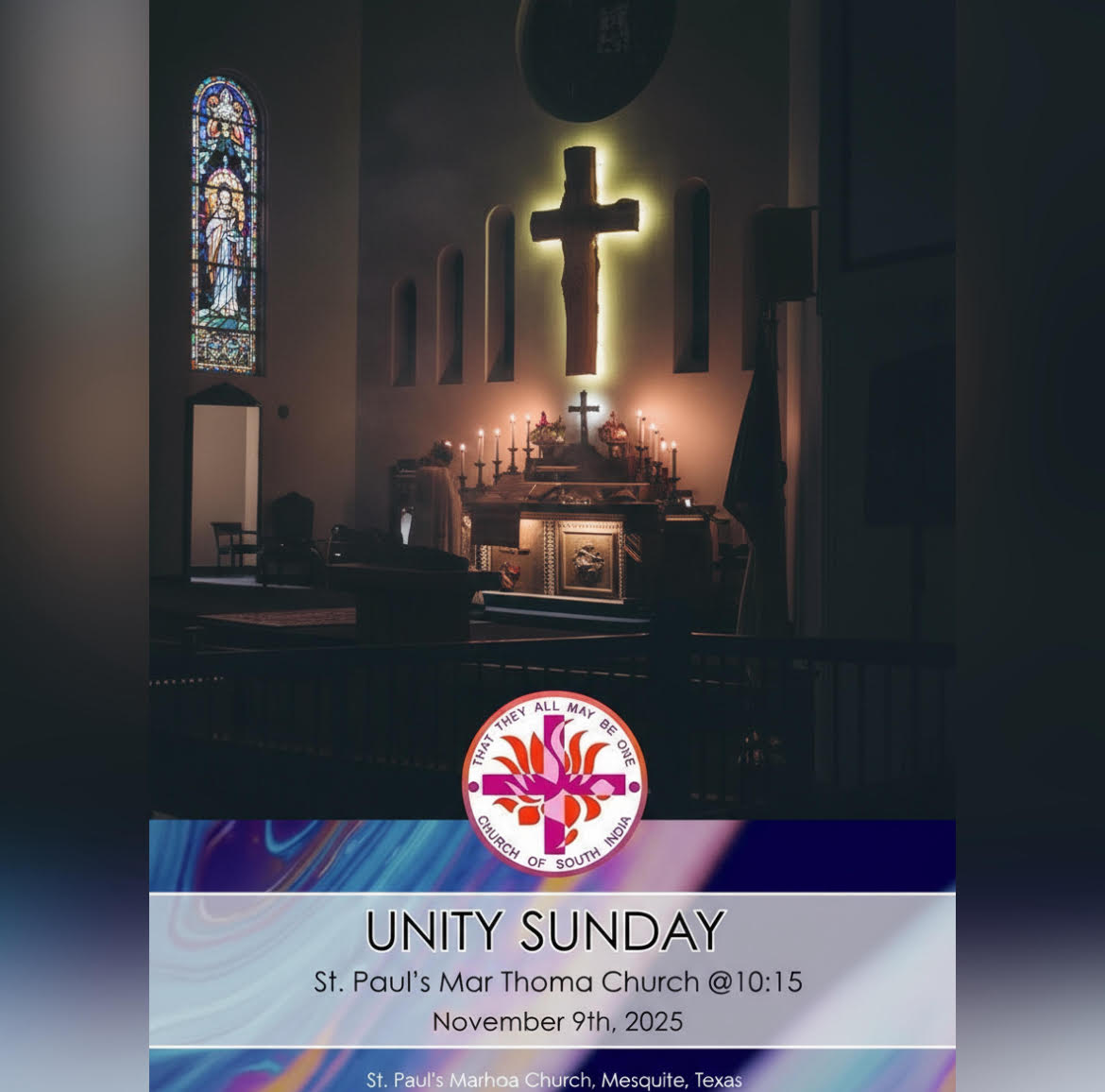 ഡാളസ് : മാർത്തോമാ സഭയും സി.എസ്.ഐ. (ക്രിസ്ത്യൻ ആസോസിയേഷൻ) സഭകളും തമ്മിലുള്ള ഐക്യത്തെ കൂടുതൽ സുവർണ്ണമാക്കാനുള്ള പദ്ധതി മുൻനിർത്തി "മാർത്തോമ – സി.എസ്.ഐ. ഏകതാ ഞായർ" നവംബർ 9ന് ആഘോഷിക്കുന്നു . സഭകളുടെ ഐക്യവും സഹകരണവും ബലപ്പെടുത്തുന്നതിനുള്ള പരിശ്രമങ്ങളുടെയും ഒരു ഭാഗമായാണ് സംഘടിപ്പിക്കുന്നത്