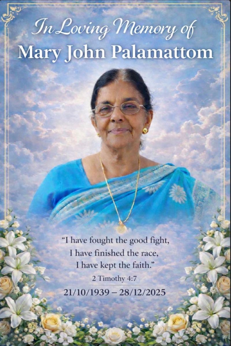 കുറിച്ചിത്താനം - പടിഞ്ഞാറേകുറ്റ് എടി ഉലഹന്നാന്റെ ഭാര്യ മേരി ജോൺ പാലമറ്റം (88) അന്തരിച്ചു.