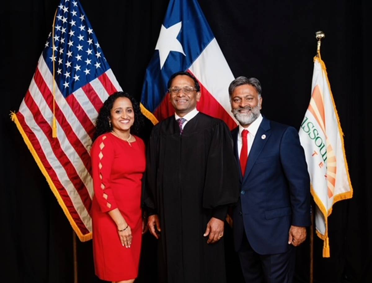 First Lady of Missouri City, Tina Elackatt, played a special role in the ceremony by holding the Holy Bible as Judge Surendran K. Pattel administered the oath of office to the Mayor—symbolizing both faith and family as pillars of leadership.