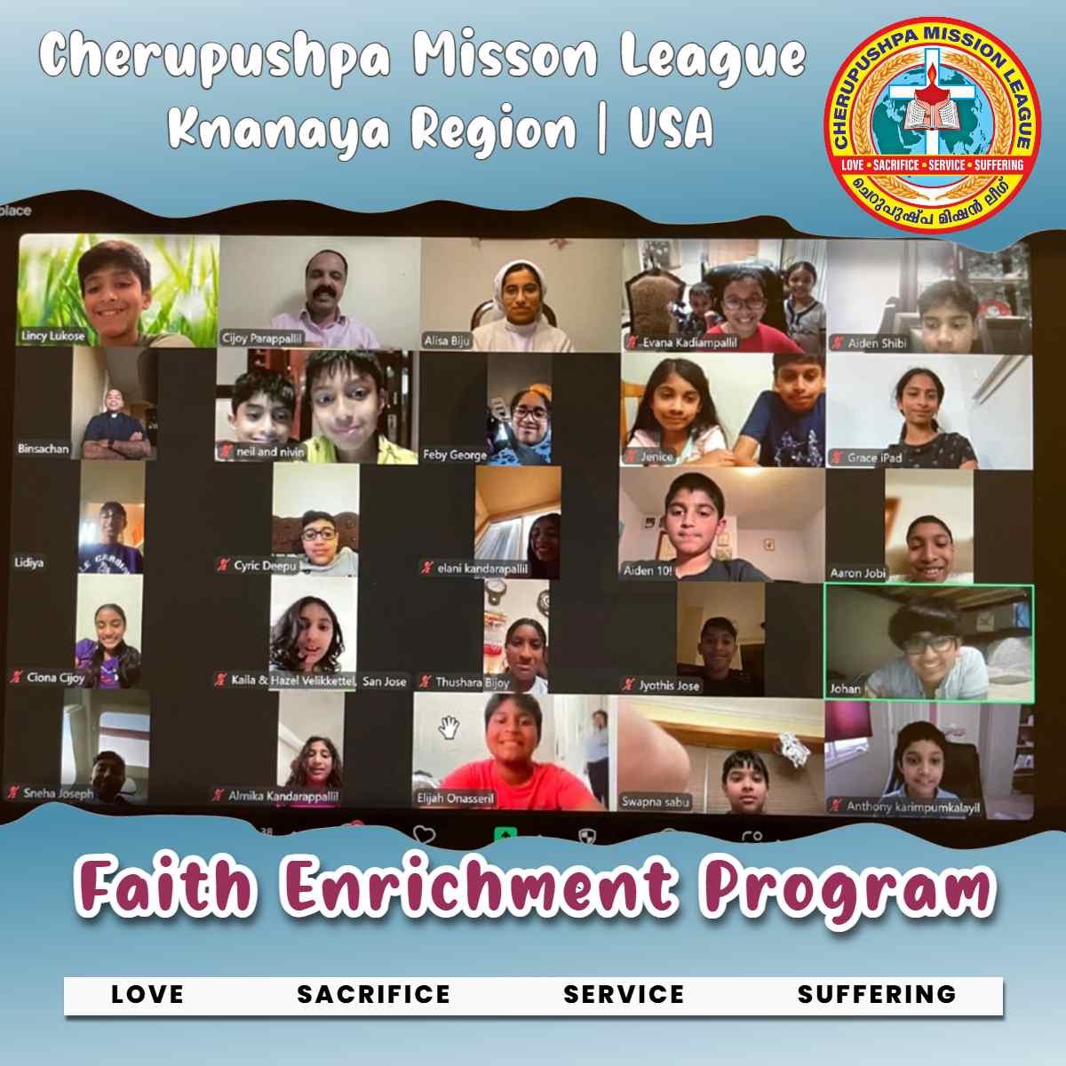 ചിക്കാഗോ: ചെറുപുഷ്പ മിഷൻ ലീഗ് ക്നാനായ റീജിയണൽ കമ്മിറ്റിയുടെ ആഭിമുഖ്യത്തിൽ റീജിയണൽ തലത്തിൽ ഫെയ്ത് എൻറിച്ച്മെന്റ് പ്രോഗ്രാം നടത്തി. മുൻ വർഷങ്ങളിൽ ആദ്യ കുർബാന സ്വീകരിച്ച കുട്ടികൾക്കായിട്ടാണ് ഈ തുടർ പരിശീലന പരിപാടി ഓൺലൈനിൽ സംഘടിപ്പിച്ചത്.