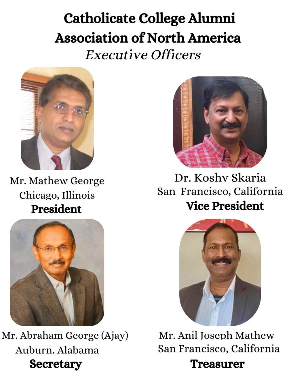 മാത്യു ജോർജ് , ഷിക്കാഗോ (പ്രസിഡണ്ട് ) കോശി സ്കറിയ, സാൻഫ്രാൻസിസ്കോ (വൈസ് പ്രസിഡണ്ട് ) ഏബ്രഹാം ജോർജ്, അലബാമ (സെക്രട്ടറി) അനിൽ ജോസഫ് മാത്യു,സാൻഫ്രാൻസിസ്കോ ( ട്രഷറർ)