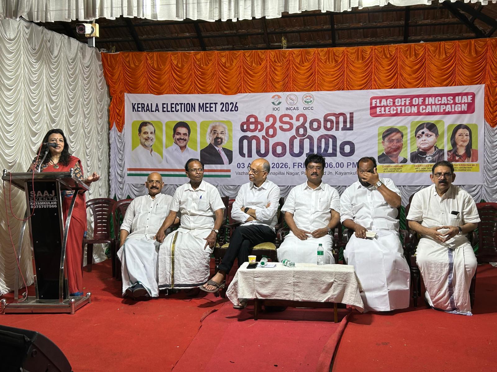The UDF candidate, Advocate M. Liju, also made a brief appearance, expressing gratitude to the gathering and acknowledging the critical role of NRIs in energizing the campaign.