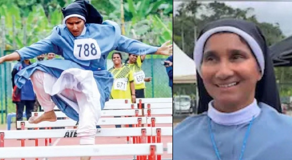 കേരള സംസ്ഥാന അത്ലറ്റിക് മീറ്റിൽ വേറിട്ട കാഴ്ചയായി കന്യാസ്ത്രീയുടെ പ്രകടനം. ചെരിപ്പില്ലാതെ കന്യാസ്ത്രീ വേഷത്തിൽ ഹർഡിൽസ് (Hurdles) ചാടിയാണ് സിസ്റ്റർ സബീന ശ്രദ്ധ നേടിയത്. ട്രാക്കിൽ വിനയത്തോടെ നിന്ന സിസ്റ്റർ, മത്സരം തുടങ്ങിയപ്പോൾ ഊർജ്ജസ്വലതയോടെ ഓടുകയും ഹർഡിലുകൾ അനായാസം ചാടിക്കടക്കുകയും ചെയ്തു. കണ്ടുനിന്നവരെല്ലാം കൈയ്യടിക്കുകയും ആർപ്പുവിളിക്കുകയും ചെയ്തു.