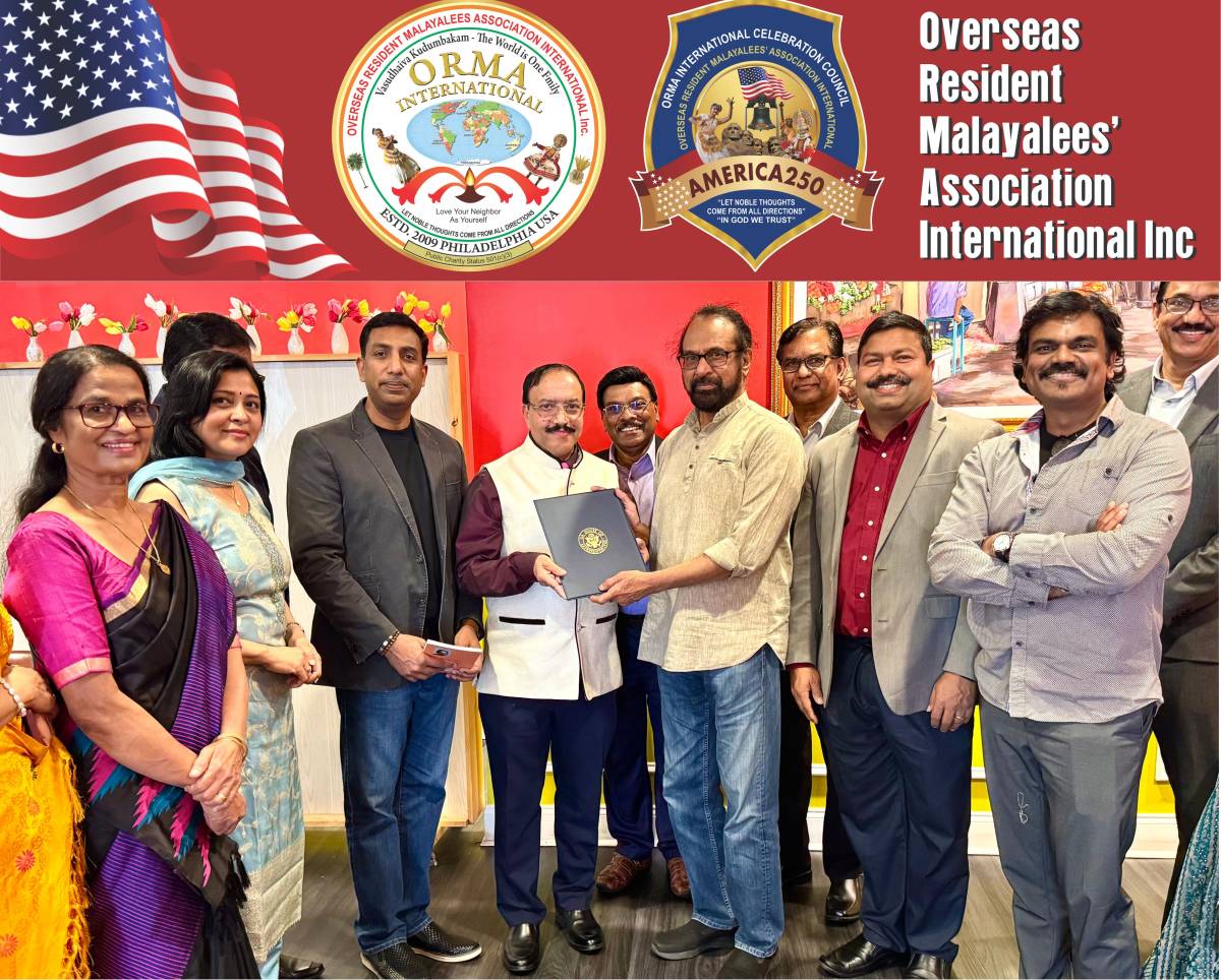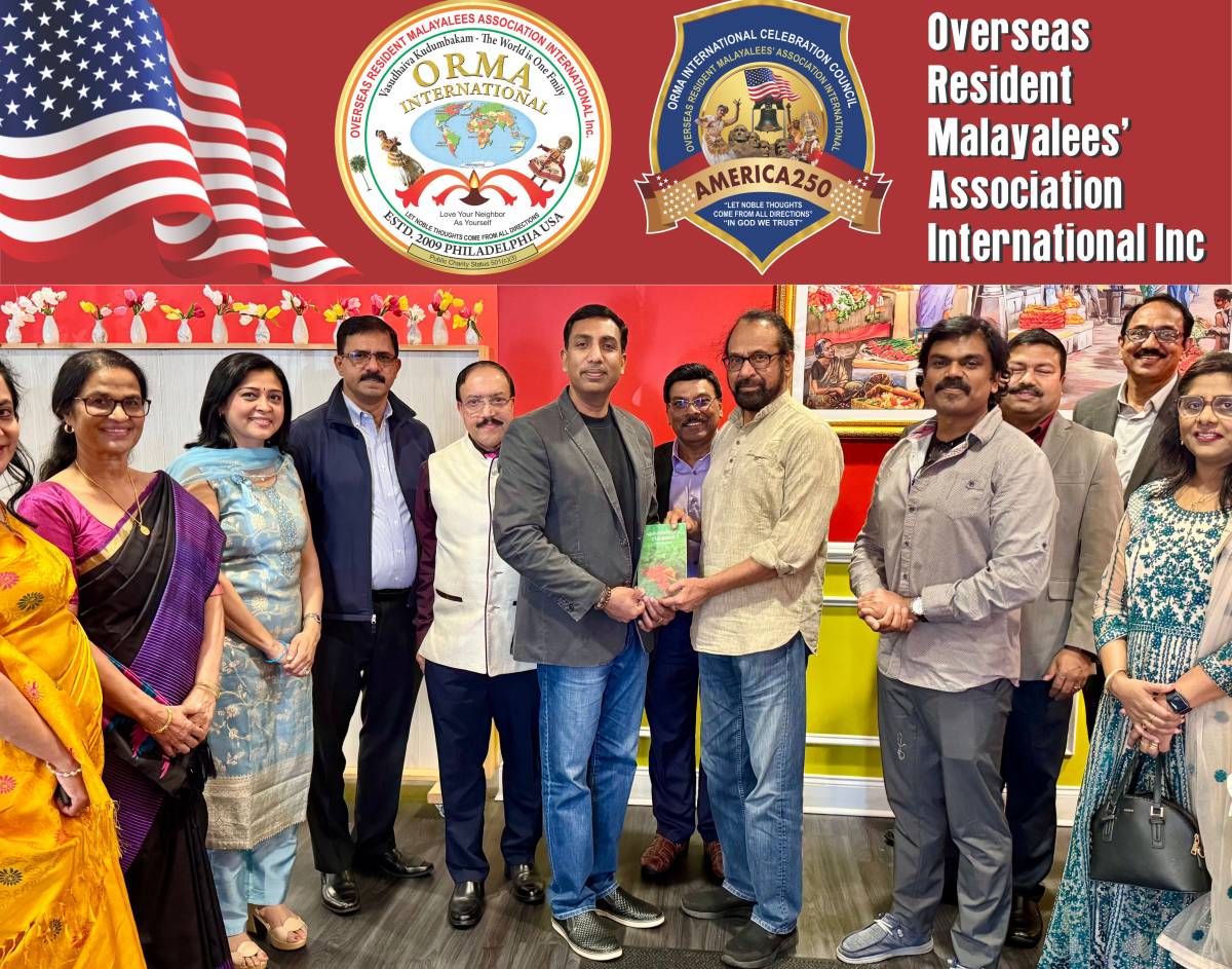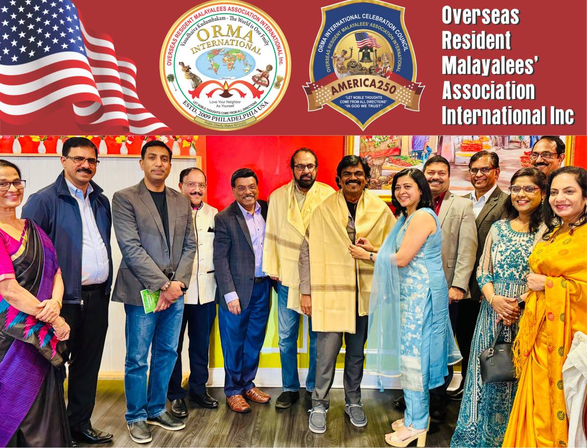 ഫിലഡൽഫിയ: ഓർമ ഇൻ്റർനാഷണൽ " അമേരിക്ക- 250", ഐക്യത്തിൻ്റെ ആഘോഷമായിരിക്കുമെന്ന്, പ്രശസ്ത സാഹിത്യകാരൻ-സിനിമാ നടൻ- സംരഭകൻ-ദാർശനികാന്വേഷി എന്നിങ്ങനെ ബഹുമുഖ സാമൂഹ്യവിലാസമുറപ്പിച്ച, തമ്പി ആൻ്റണി പ്രസ്താവിച്ചു. ഓർമ ഇൻ്റർനാഷണൽ "അമേരിക്ക 250" ആഘോഷക്രമീകരണങ്ങളുടെ ഭാഗമായി, തമ്പി ആൻ്റണി യ്ക്കും, സിനിമാ സംവിധായകൻ (എഴുത്തുകാരൻ) സോഹൻ ലാലിനും, ഓർമാ ഇൻ്റർനാഷണൽ സെലിബ്രേഷൻ കൗൺസിൽ ഒരുക്കിയ സ്വീകരണ യോഗമായിരുന്നു വേദി.