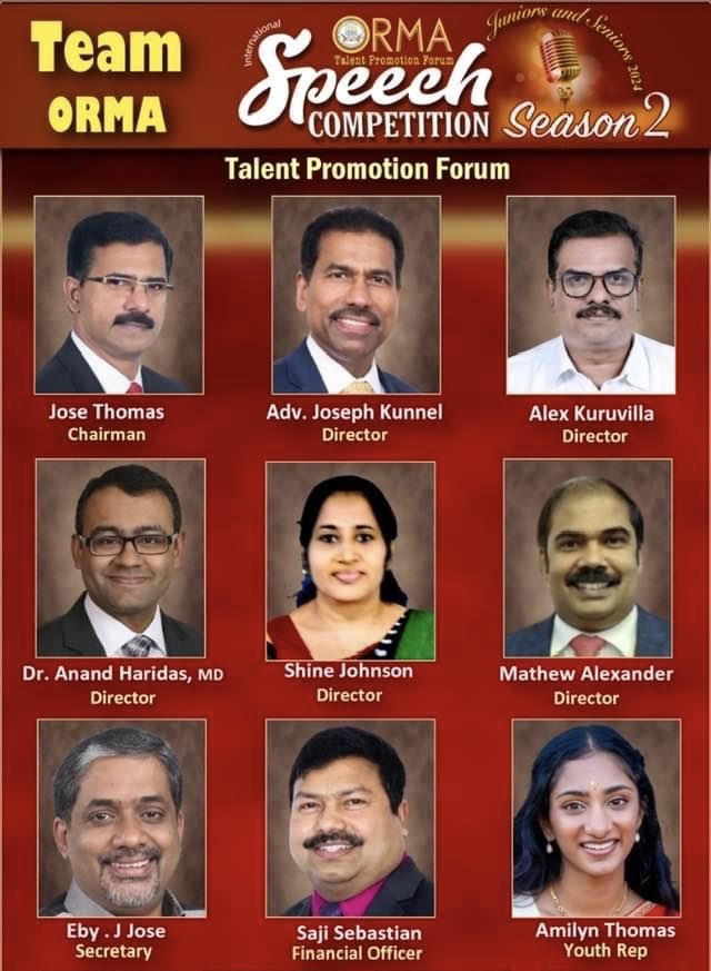 കൂടുതൽ വിവരങ്ങൾക്ക്: ജോസ് തോമസ് ( ഓർമാ ഇൻ്റർനാഷണൽ ടലൻ്റ് പ്രൊമോഷൻ ഫോറം ചെയർ):1- 412- 656-4853, എബി ജോസ് ( ഓർമാ ഇൻ്റർനാഷണൽ ടലൻ്റ് പ്രൊമോഷൻ ഫോറം സെക്രട്ടറി)91-944-770-2117, ജോസ് ആറ്റുപുറം (ഓർമാ ഇൻ്റർനാഷണൽ ട്രസ്റ്റീ ബോർഡ് ചെയർ): 1-267-231-4643, ഷാജീ അഗസ്റ്റിൻ ( ഓർമാ ഇൻ്റർനാഷണൽ ജനറൽ സെക്രട്ടറി) : 91-944-730-2306, ജോർജ് നടവയൽ ( ഓർമാ ഇൻ്റർനാഷണൽ പ്രസിഡൻ്റ്) 1-215-494-6420.