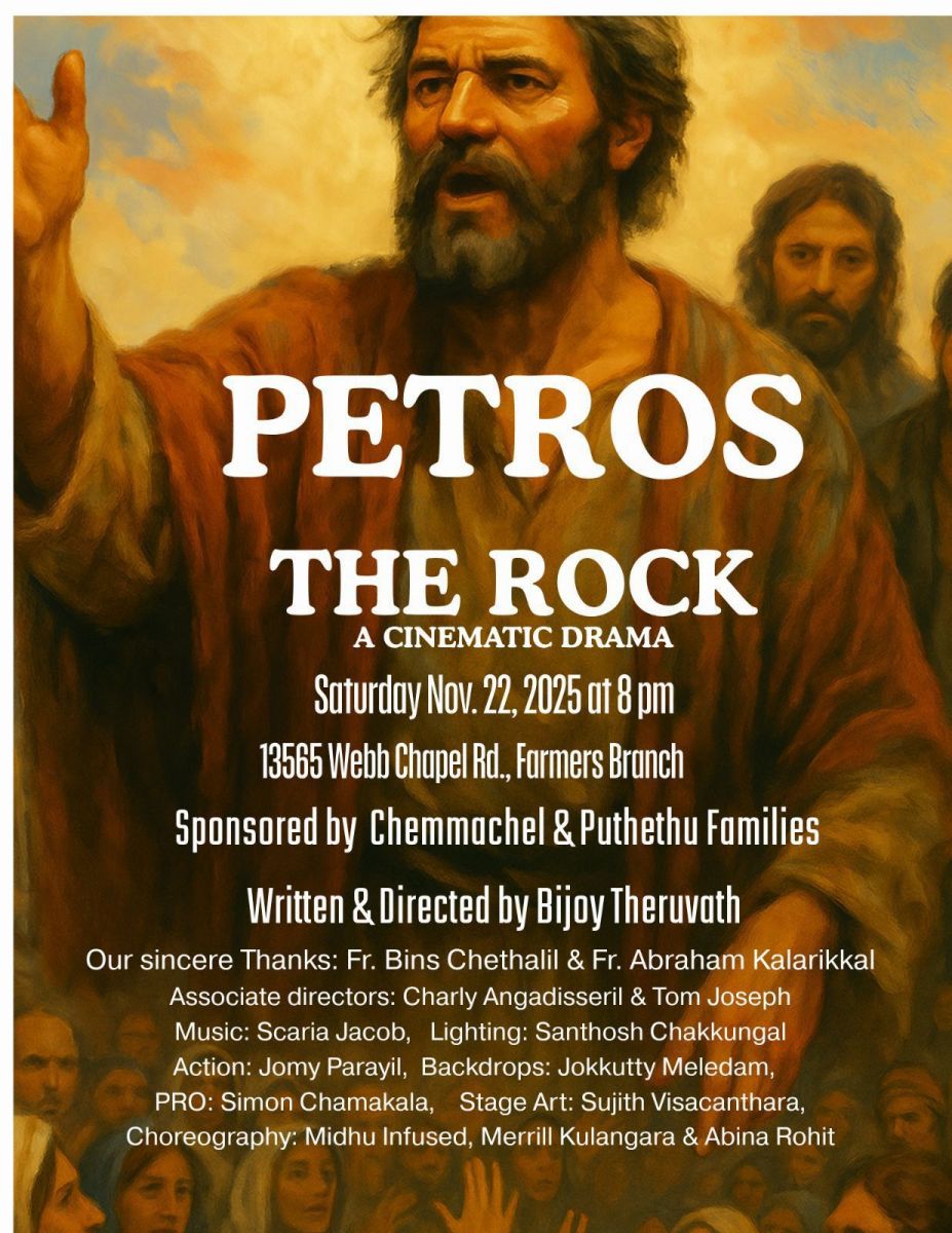 ഡാളസ് ക്രിസ്തുരാജ ദേവാലയത്തിൽ പെരുന്നാളിനോട് അനുബന്ധിച്ച് അവതരിപ്പിക്കപ്പെട്ട പെട്രോസ്-ദി റോക്ക് എന്ന സിനിമാസ്കോപ്പ് ഡ്രാമ നാടകപ്രേമികളുടെ കണ്ണും കരളും ഹഠാദാകർഷിച്ച കലാവിരുന്നായി. കുറ്റബോധത്തിന്റെ ഉമിത്തീയിൽ നീറുന്ന പത്രോസിന്റെ ജീവിതത്തെ കേന്ദ്രബിന്ദുവാക്കി മുന്നോട്ടുനീങ്ങുന്ന നാടകം വൈകാരിക മുഹൂർത്തങ്ങളും ഹ്രദയസ്പര്ശിയായ സംഭാഷണങ്ങളും കൊണ്ട് സമ്പന്നമാണ്. ആധുനിക സാങ്കേതിക വിദ്യയെ പരമാവധി ഉപയോഗപ്പെടുത്തി വേദിയിൽ അവതരിപ്പിച്ച ഈ ഡ്രാമ കൂടുതൽ വേദികളിൽ ഫോർ ഡയമൻഷൻ (4D) നിൽ അവതരിപ്പിക്കാനാണ് ശ്രമിക്കുന്നതെന്ന് ഇതിന്റെ അണിയറ പ്രവർത്തകർ സൂചിപ്പിച്ചു. നിറപ്പകിട്ടാർന്ന നൃത്തരംഗങ്ങളും ഉദ്യോഗഭരിതമായ സംഘട്ടന രംഗങ്ങളും, ഹൃദയഹാരിയായ ഗാനങ്ങളും ഉൾപ്പെടുത്തി എല്ലാ തലമുറയിലെ പ്രേക്ഷകർക്കും ആസ്വദിക്കാൻ കഴിയുന്ന രീതിയിൽ ആണ് ഈ ഡോകുഡ്രാമ ഒരുക്കിയിരിക്കുന്നത്.